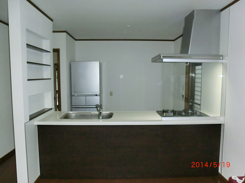 現調にお伺いさせていただいたのですが、タイル張りでキッチンも古くはなってましたが、ぐるっと壁で囲まれてたので閉鎖的な印象でした😅