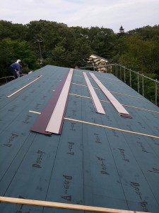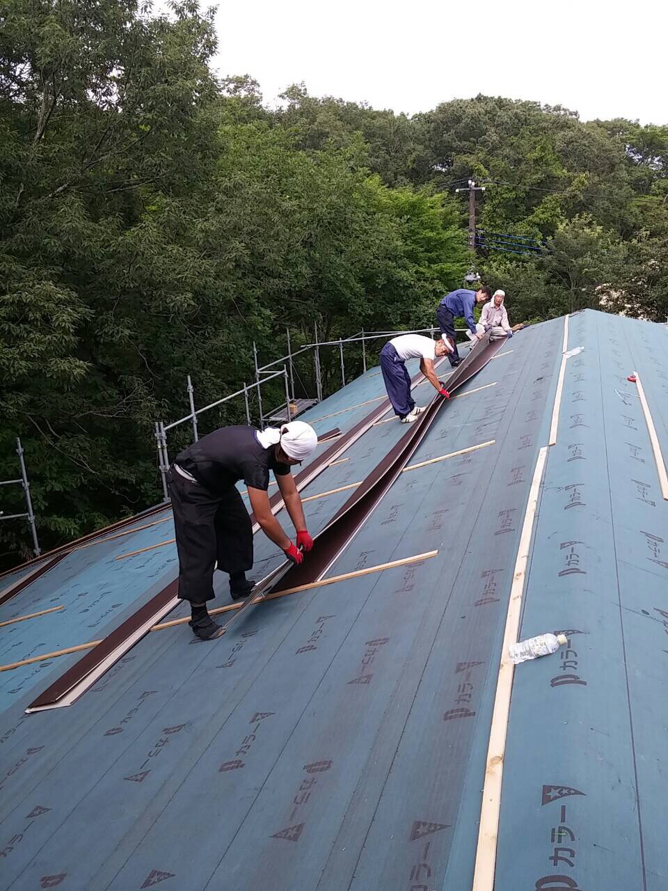 大きな屋根なので、長い板金を上まであげるだけでもひと苦労‼︎