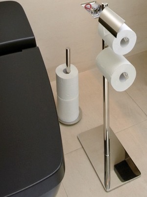例えばステンレスの紙巻き器とプラスチックのタオル掛けが並んでいたり、