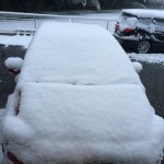 何故か車の上と隣の家、それに周りの田んぼは雪が積もっているにもかかわらず、砂利の上には雪が全く無いのです!!!!
