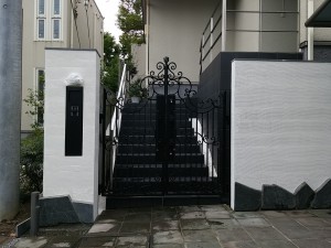 玄関のタイルが黒なのでちょっと見づらいのですが、素晴らしい「アイ 門柱~♪アイ 門扉~♪」が完成しました(^-^)v