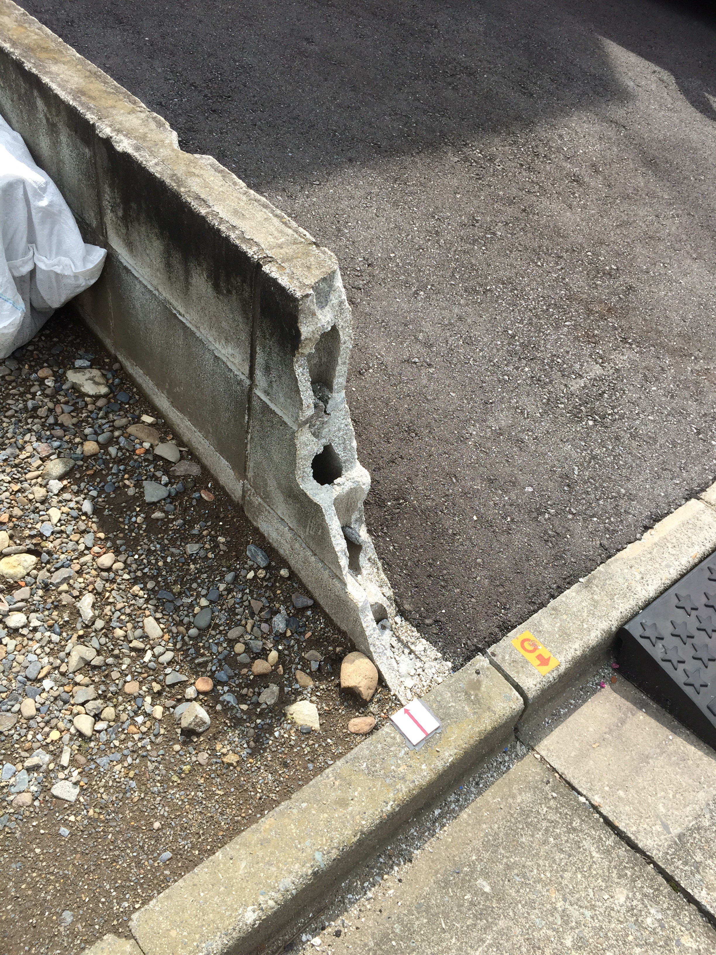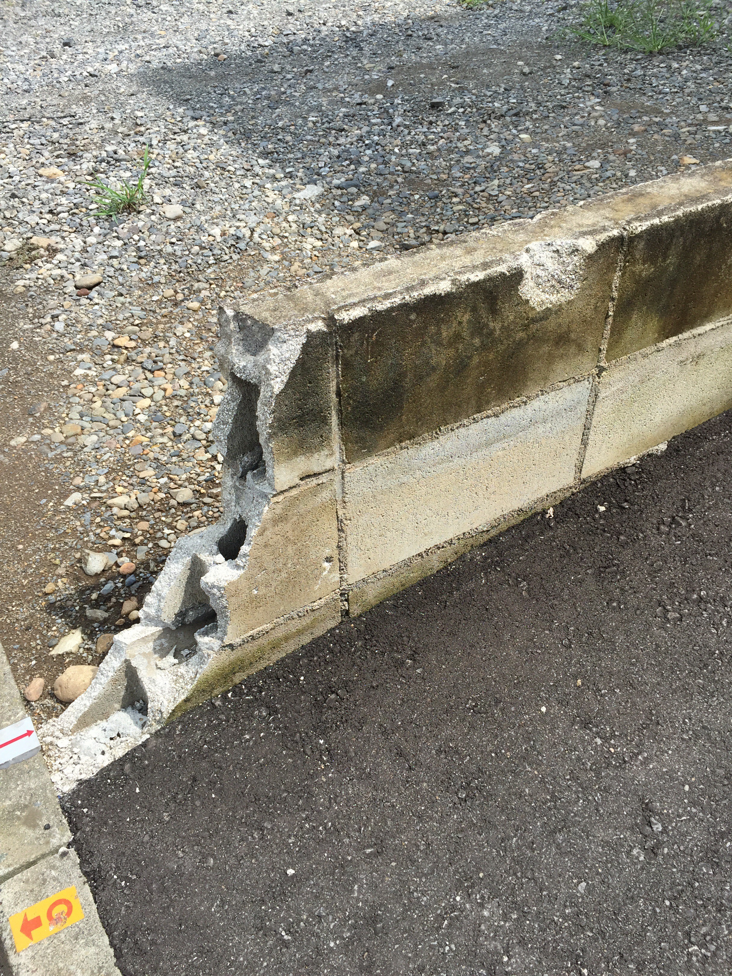 車をぶつけた衝撃でブロックが割れて落ちてしまったのです。