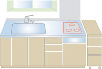・シンクまわり : 水を使う作業のモノを配置
