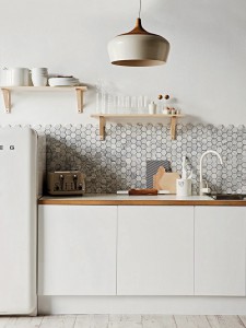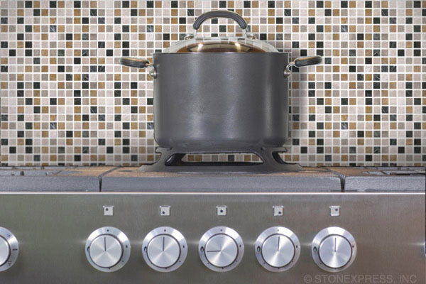 落ち着いた色調のモザイク柄なら、キッチンに大人な上質さを