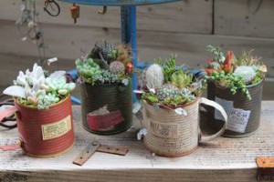 空き缶をリメイクした鉢カバーに多肉植物を!