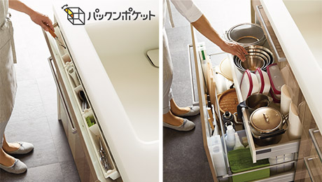 ピーラーやキッチンばさみなどの小物は「パックンポケット」へ。