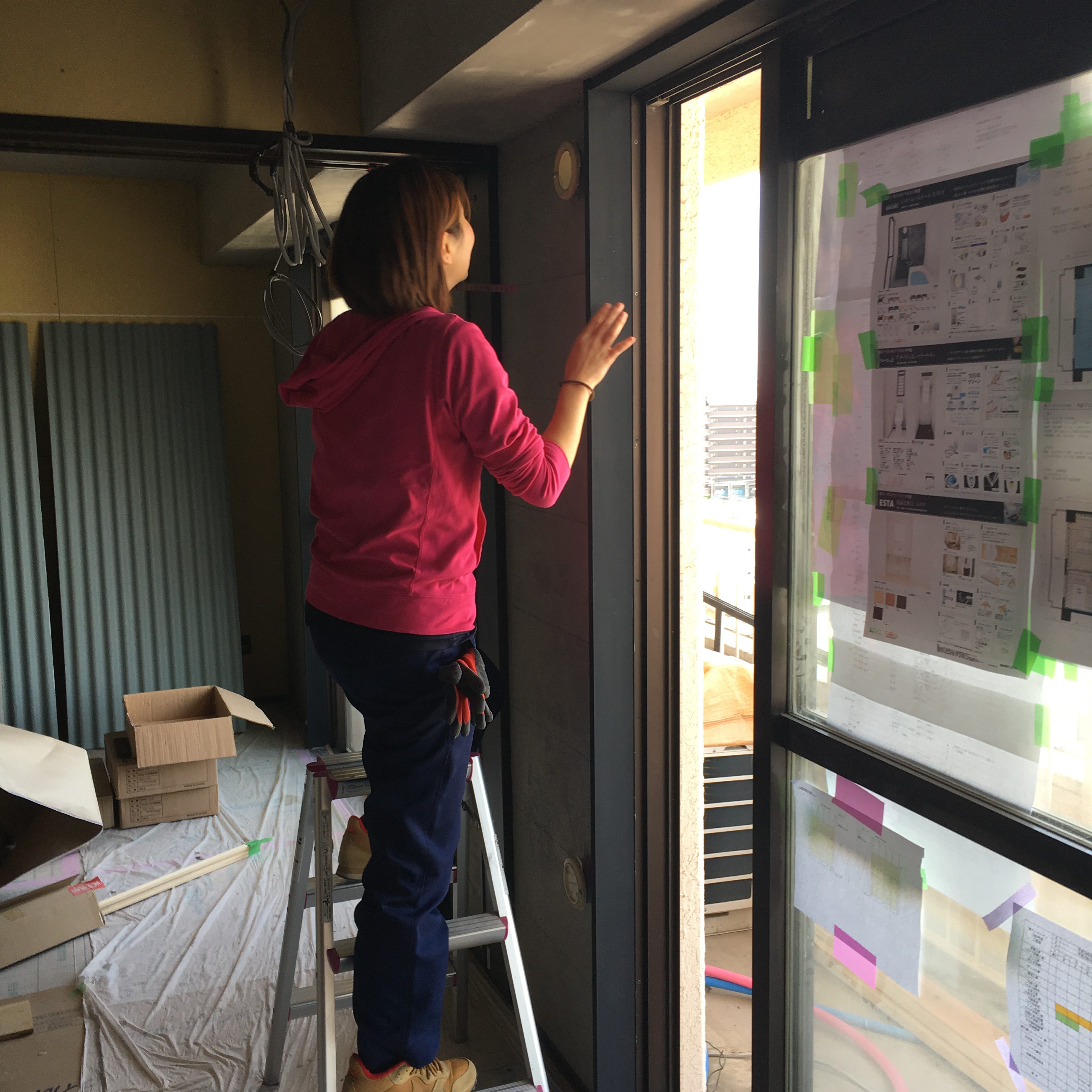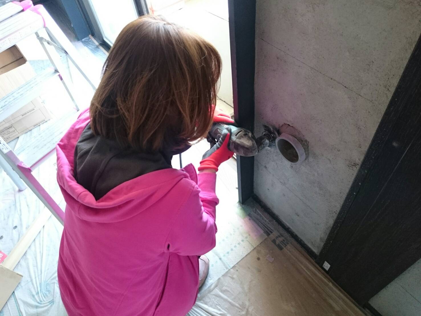 その間私は、玄関土間を仕上げの職人のセメント材を