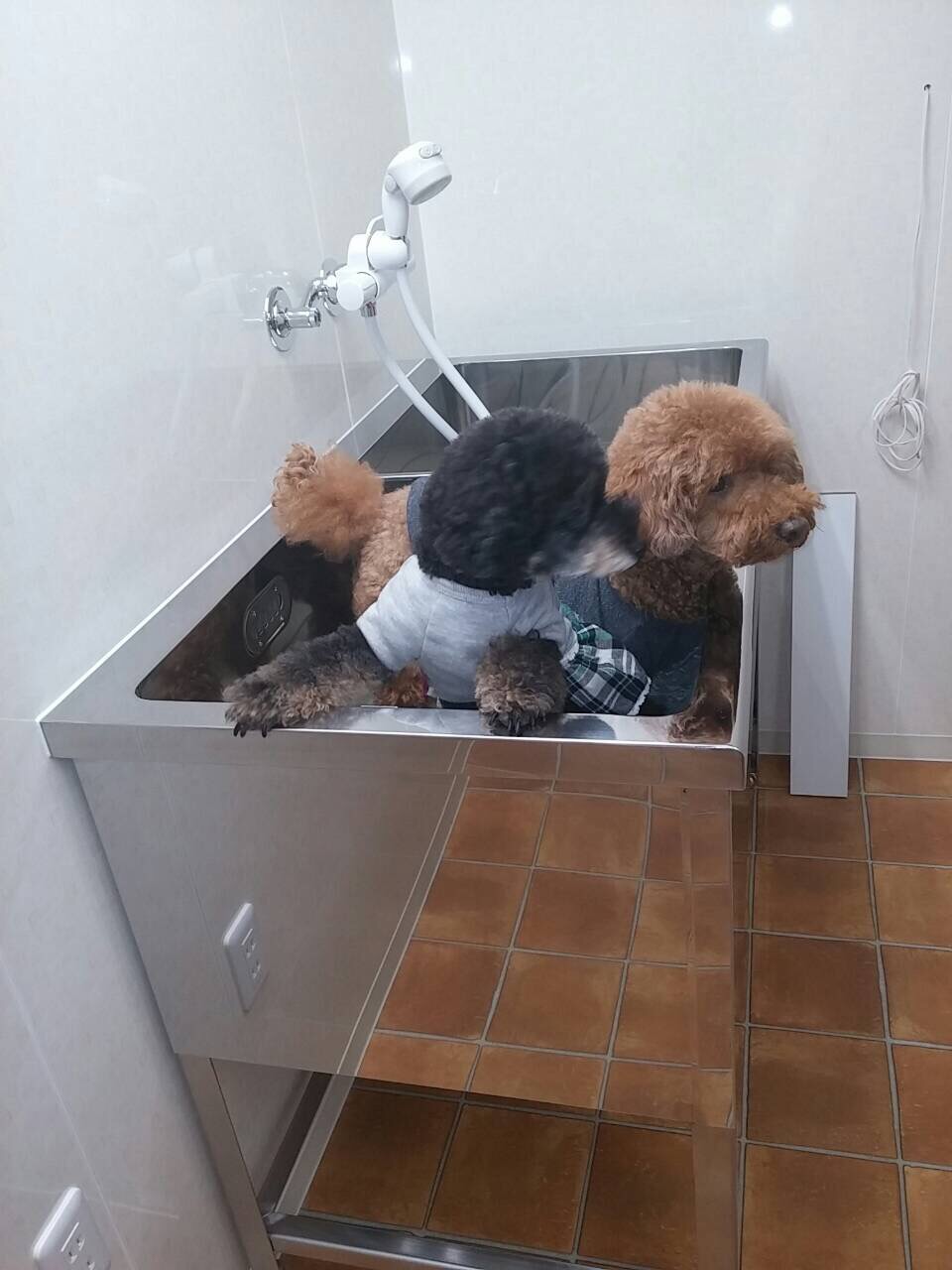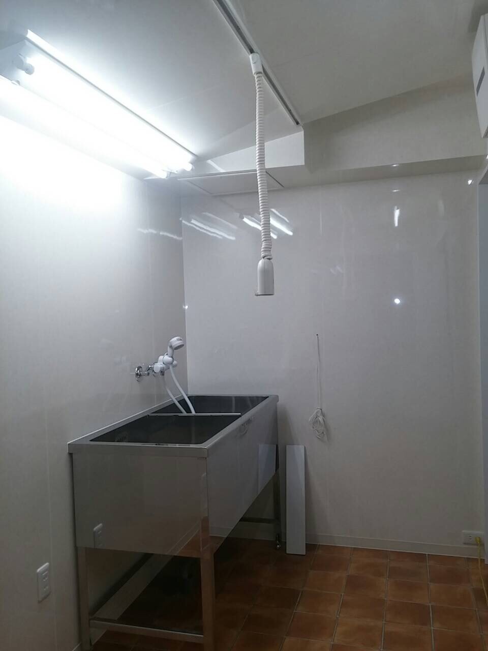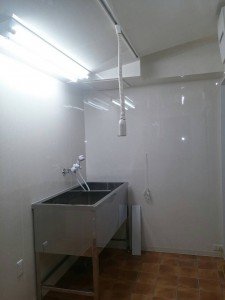 現在、宇都宮駅前にご自宅をかまえ、そちらのベランダ下を利用しトリミングサロンを造作中のN様、中が素敵に完成です。
