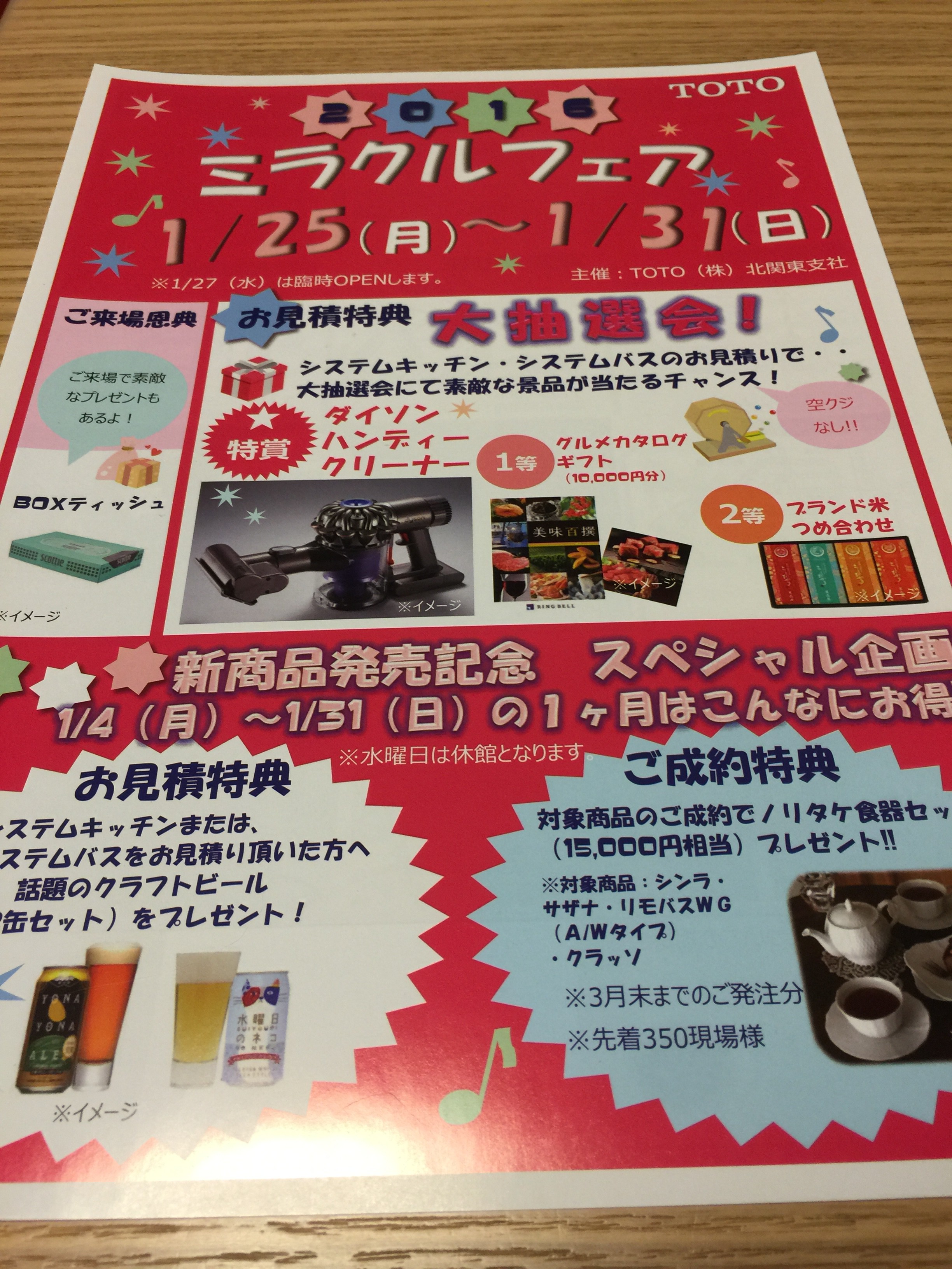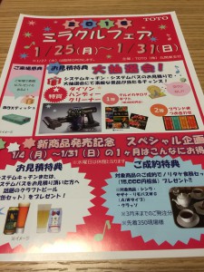 今月の25日(月)〜31日(日)まで、TOTOショールームにてミラクルフェアを開催中です!