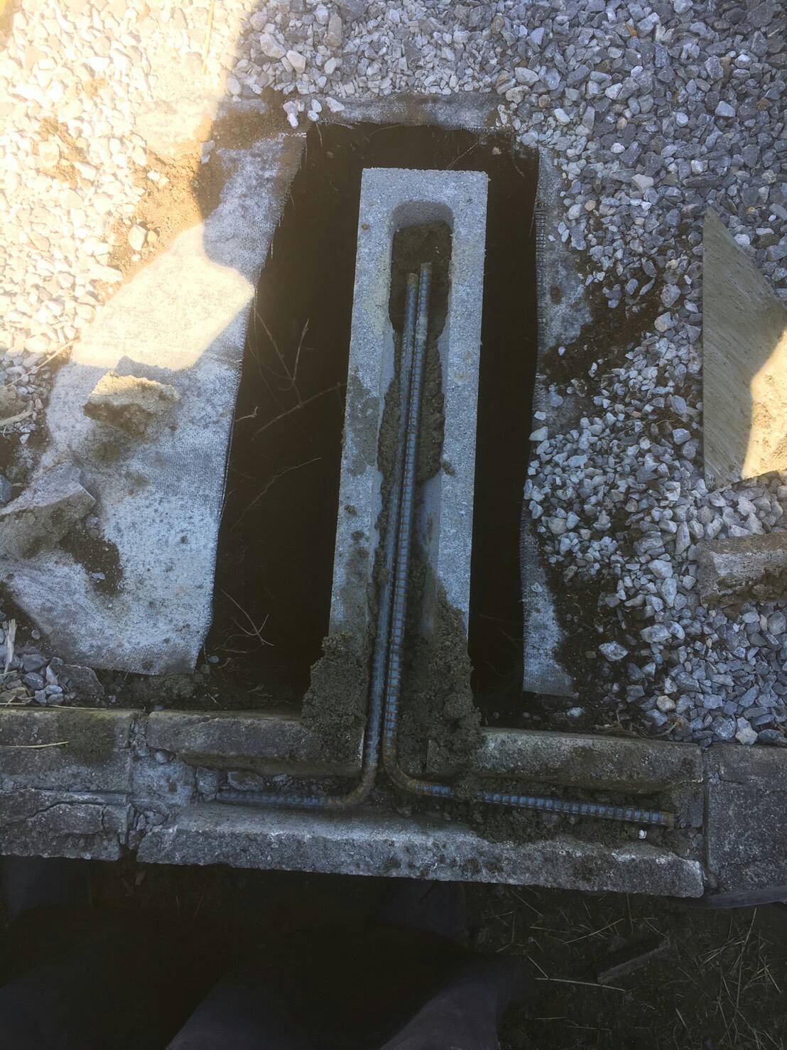一番上の段には既存のブロックをハツって、