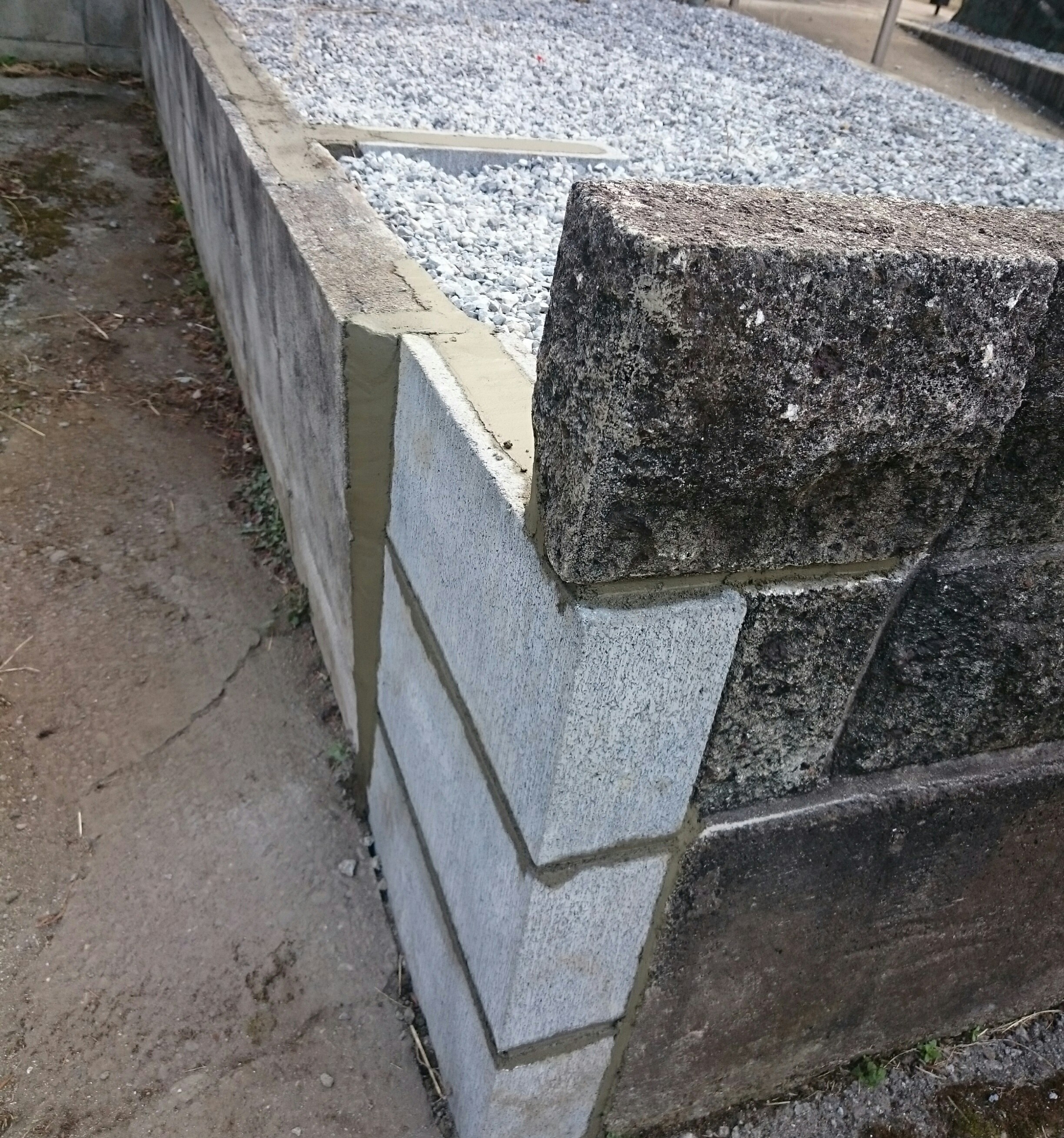 既存のブロックとの段差はモルタルで埋めました。