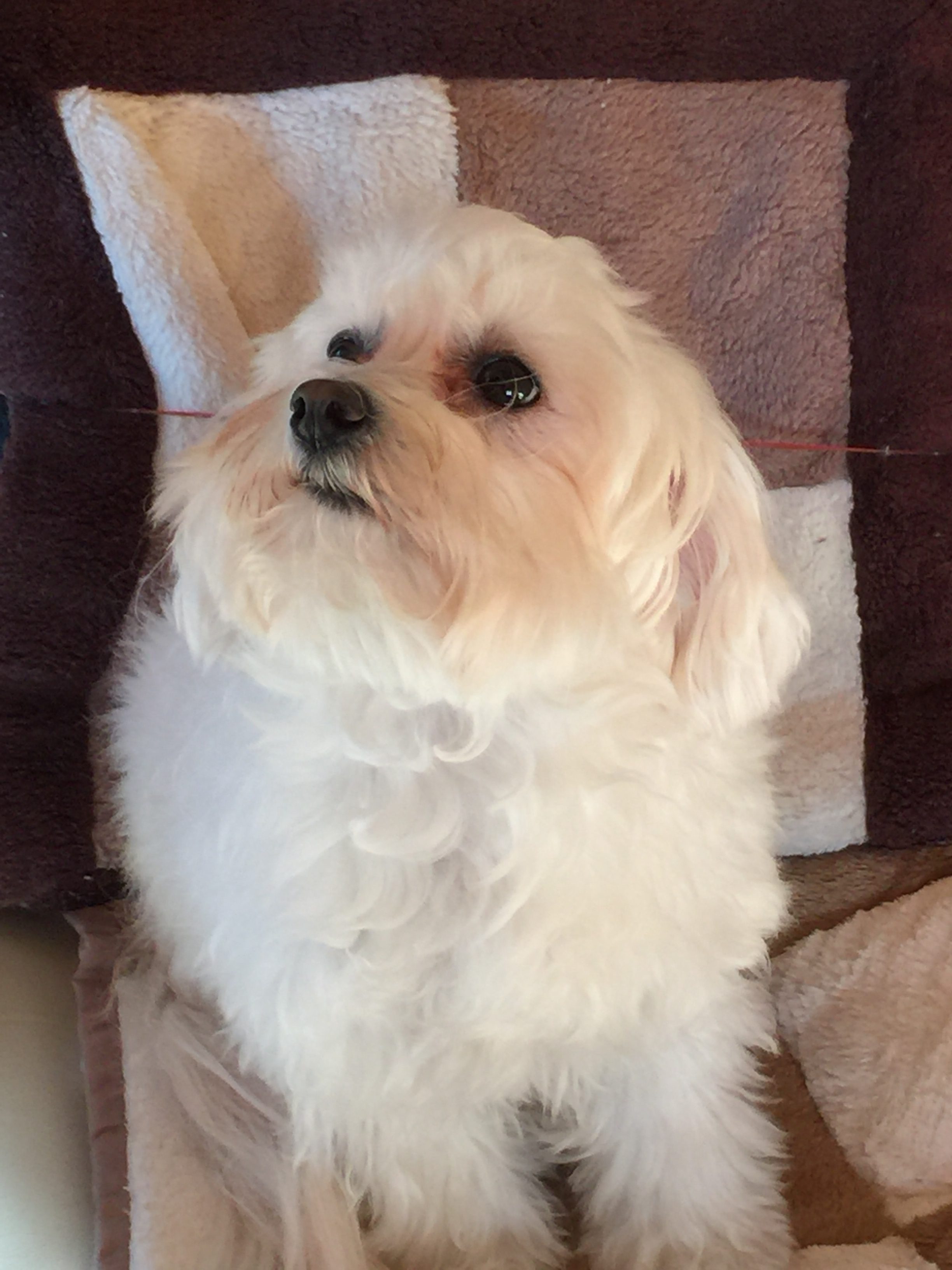 真っ白でフワッフワッの可愛い犬のモモちゃんがいます。