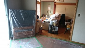 1/まず最初に監督さんが養生(汚れ、傷防止目的)作業をします!