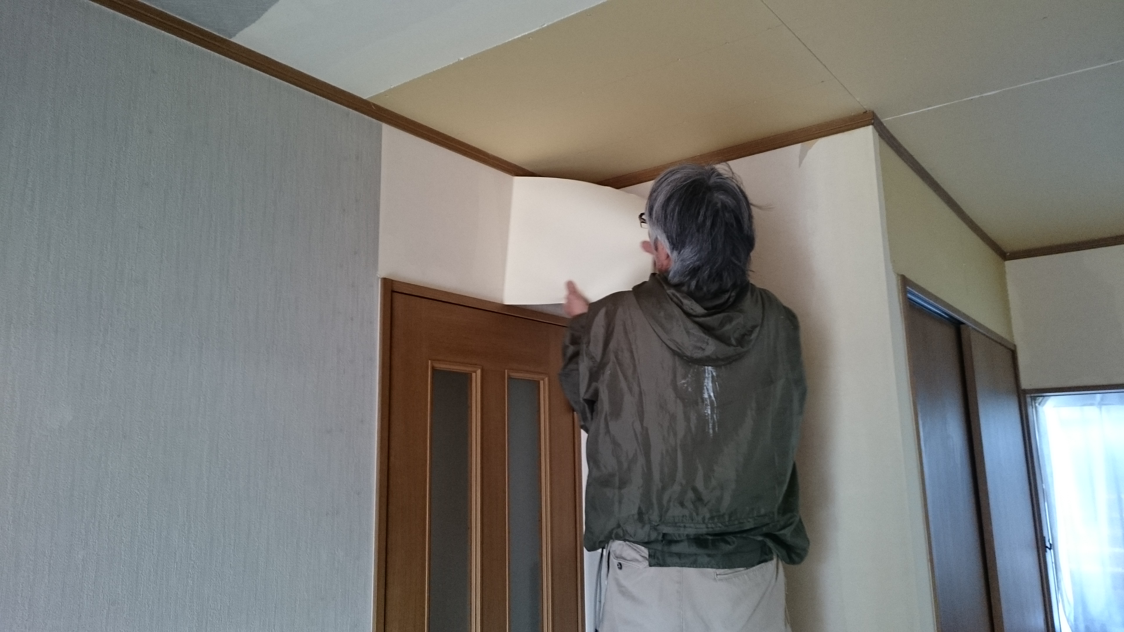 3/職人さんが既存のクロスをヘラやカッターで剥がしていきます!