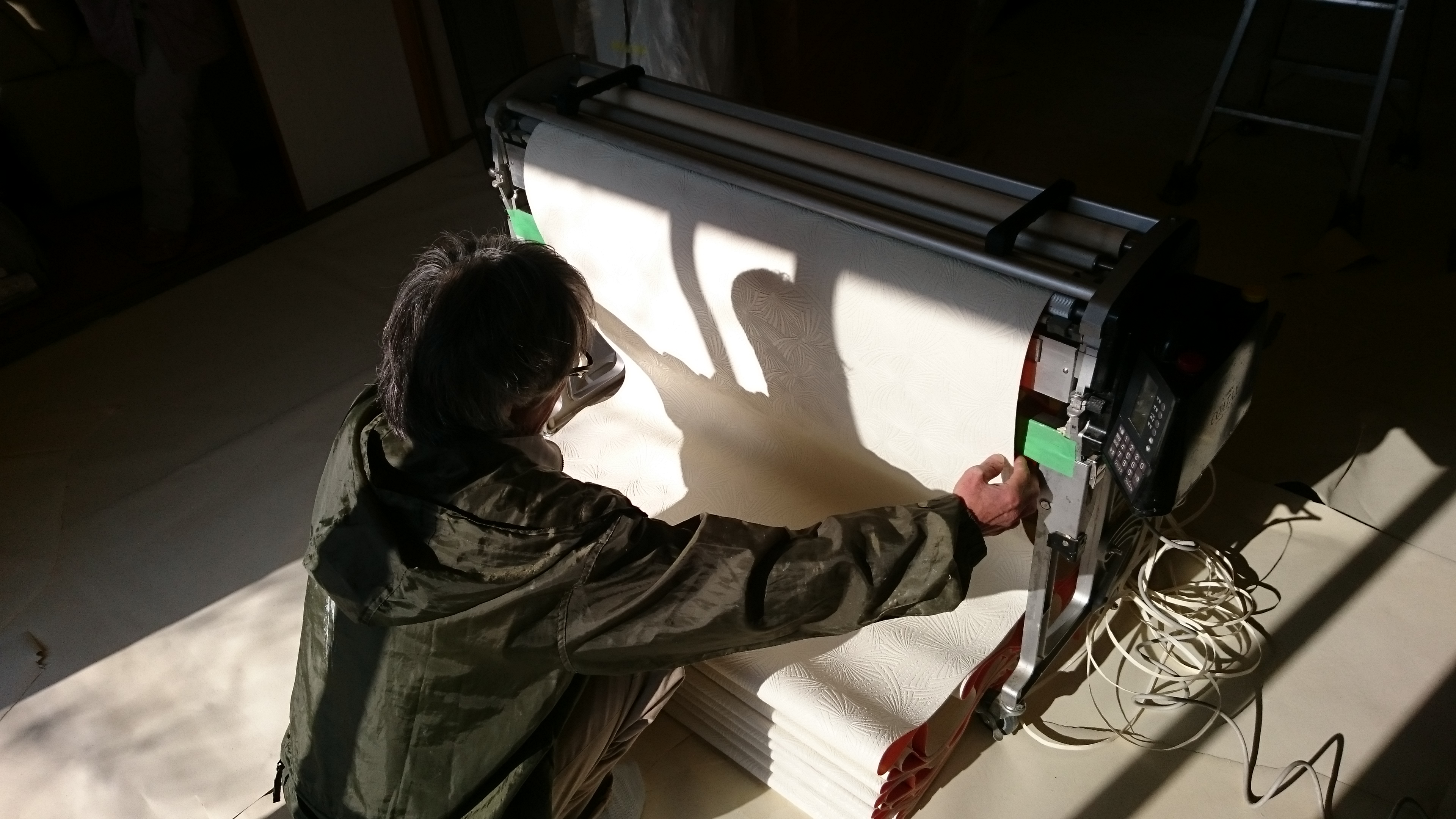 5/準備が整いましたら、これから新規の壁紙クロスに糊付けを行っていきます!
