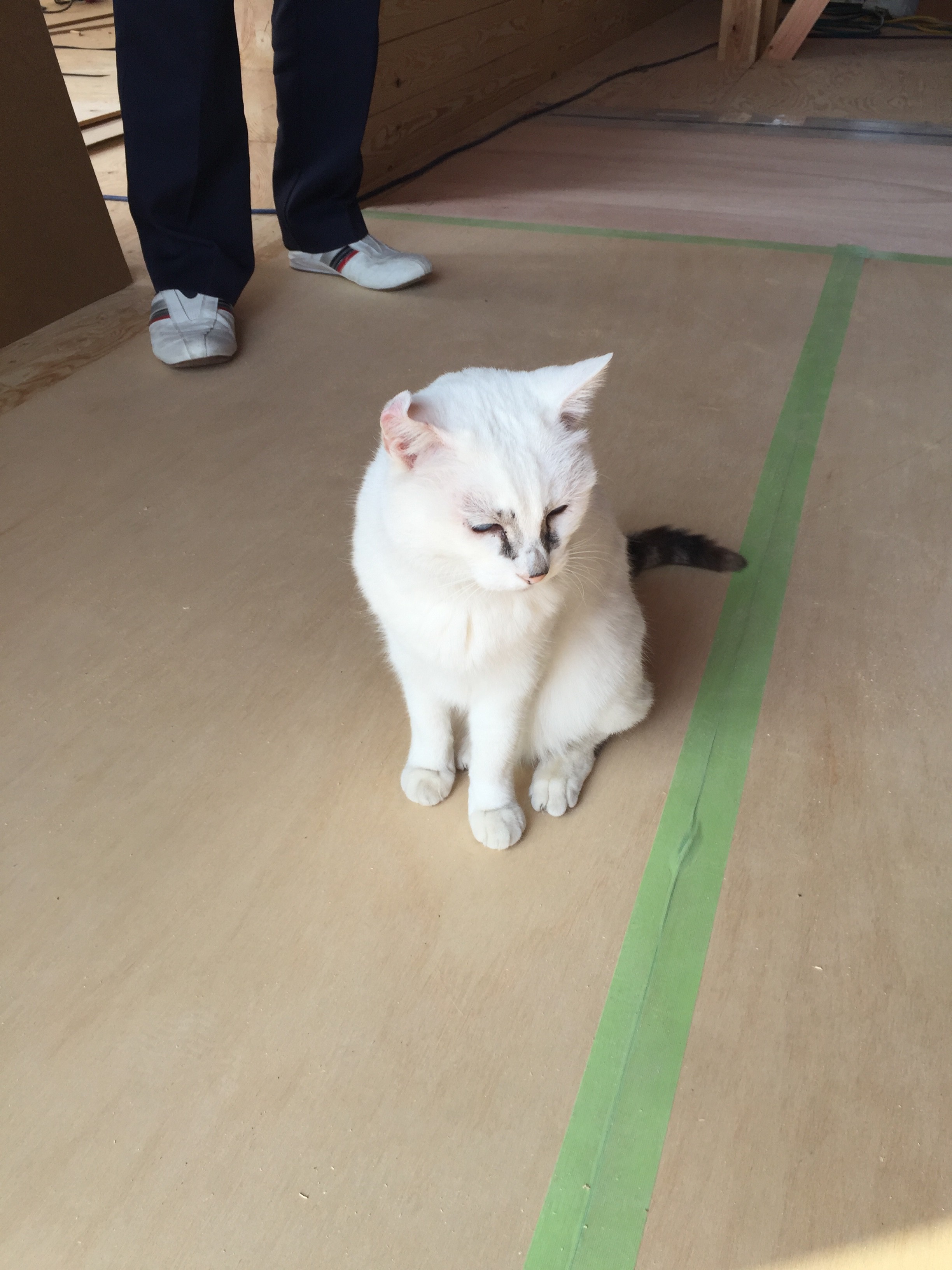 そんな中、いつもなつっこく出迎えてくれる猫ちゃんが、工事が始まって以来、居場所が無く不便をかけております‼︎