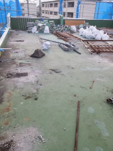 解体したコンクリートガラ、鉄のフェンスをこれから3F屋上から下に降ろさなければなりません!