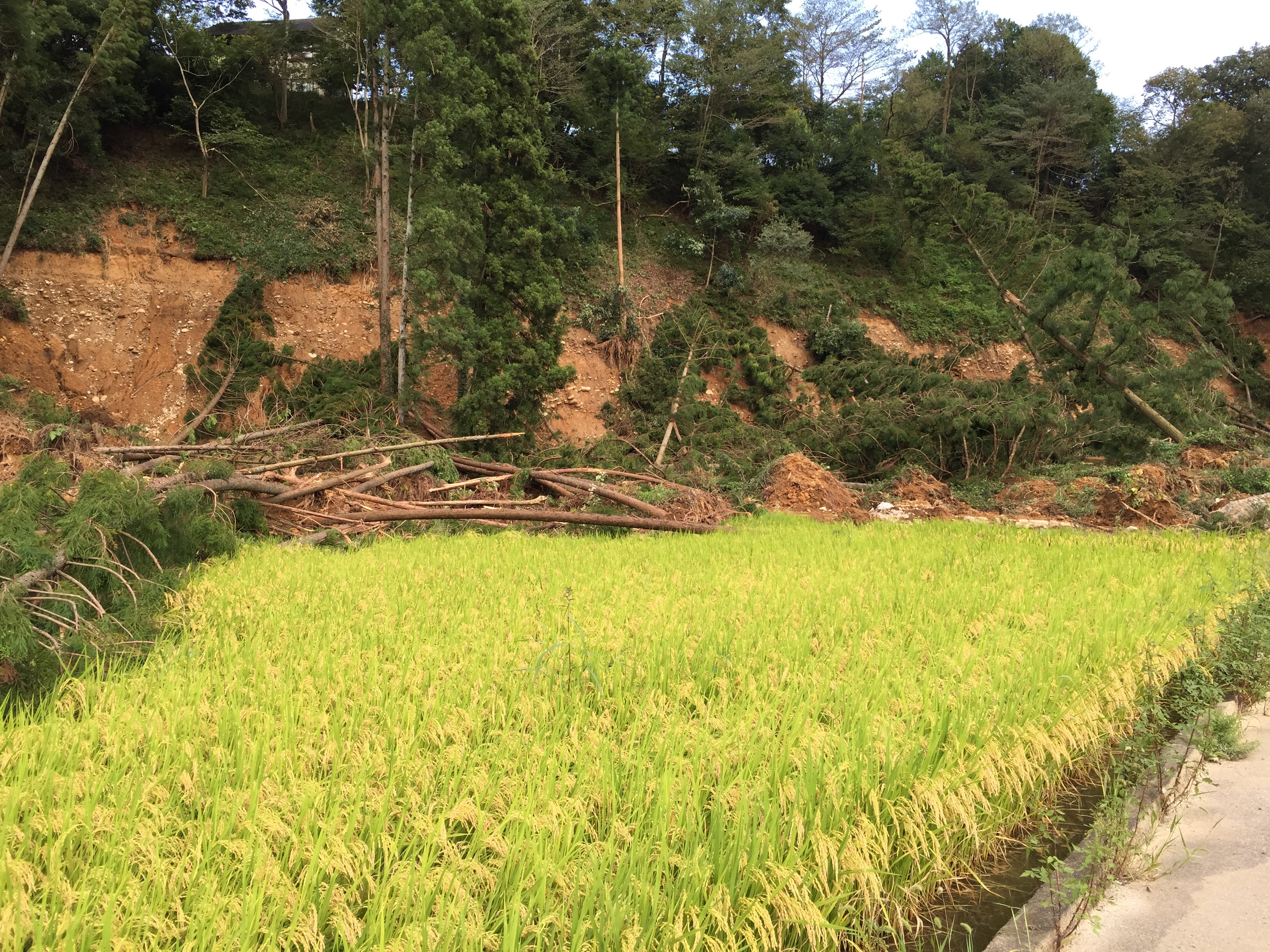 壁が崩れて居ました(≧∇≦)、本当に凄い雨風でしたので、今でも水が流れています、側を通るだけで怖かったです(≧∇≦)。