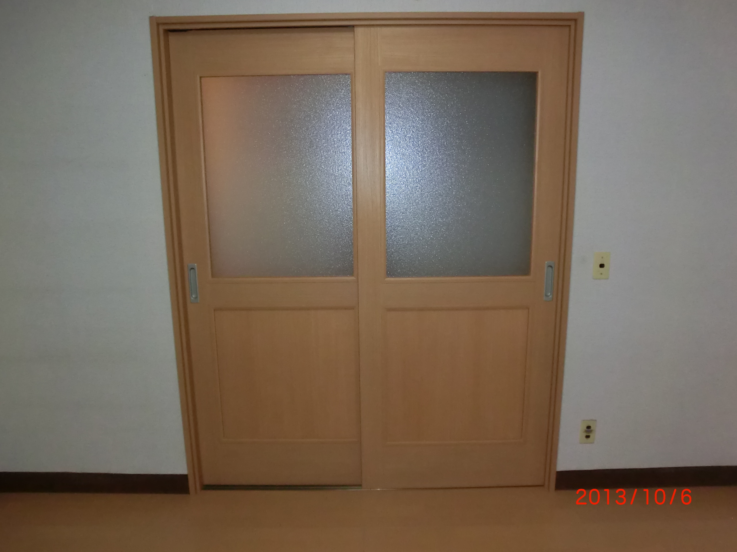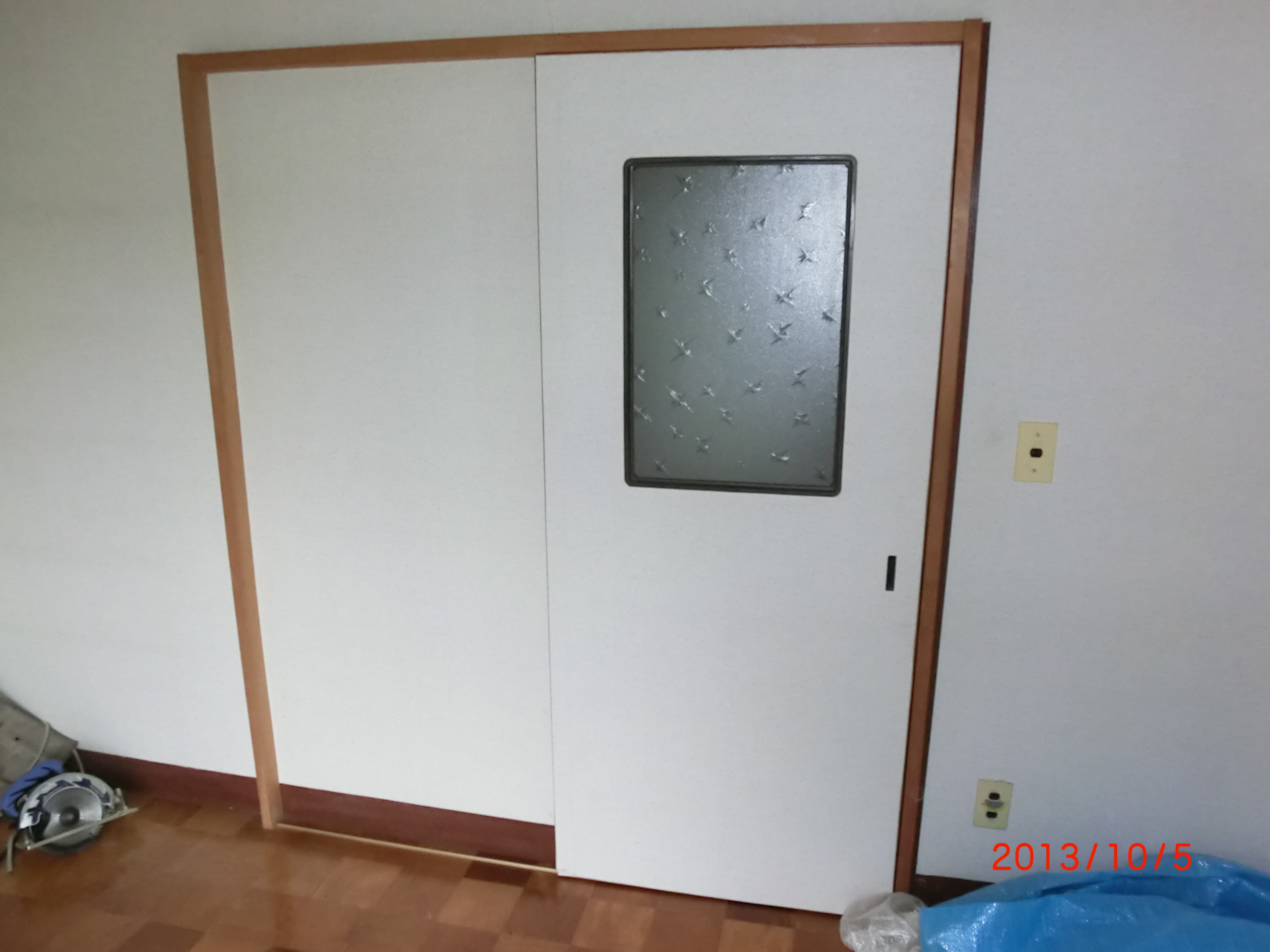 築年数も古くなり、床がブカブカということで張り替えを希望され、部屋の中も暗いので方引きのドアも引き違いに替えたいというご希望でした♪