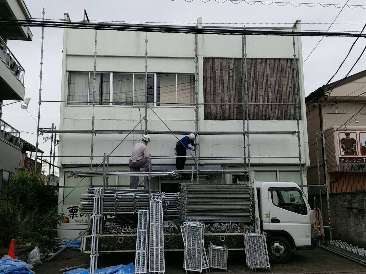 先日、宇都宮市内のある店舗で塗装、防水、外構工事を頂き、足場を組んでいたのですが…土地が少し狭く、右お隣り様に事情を話したところ心よく土地を貸して下さり、無事、足場設置が終わりました‼︎