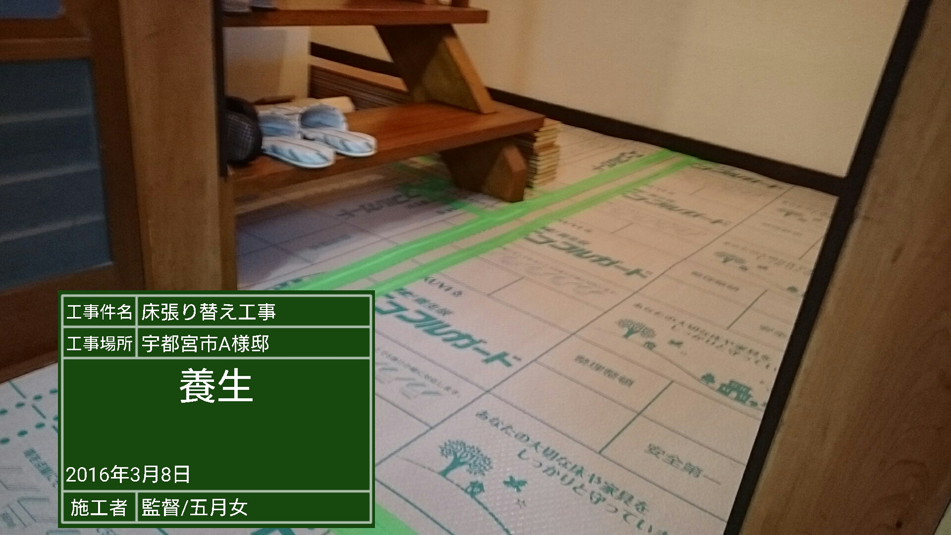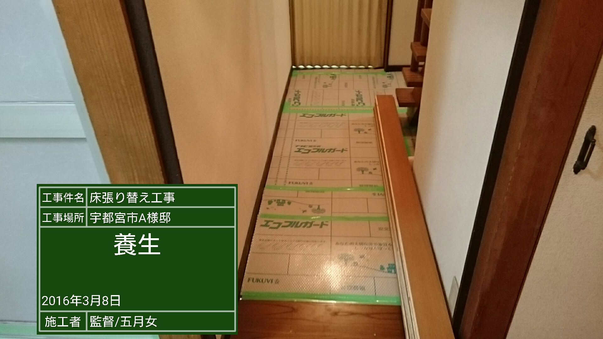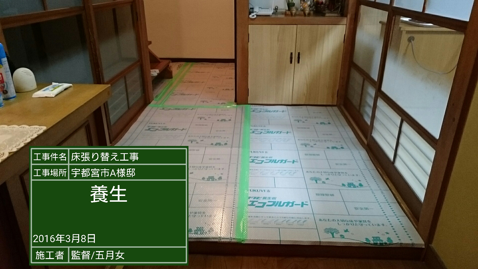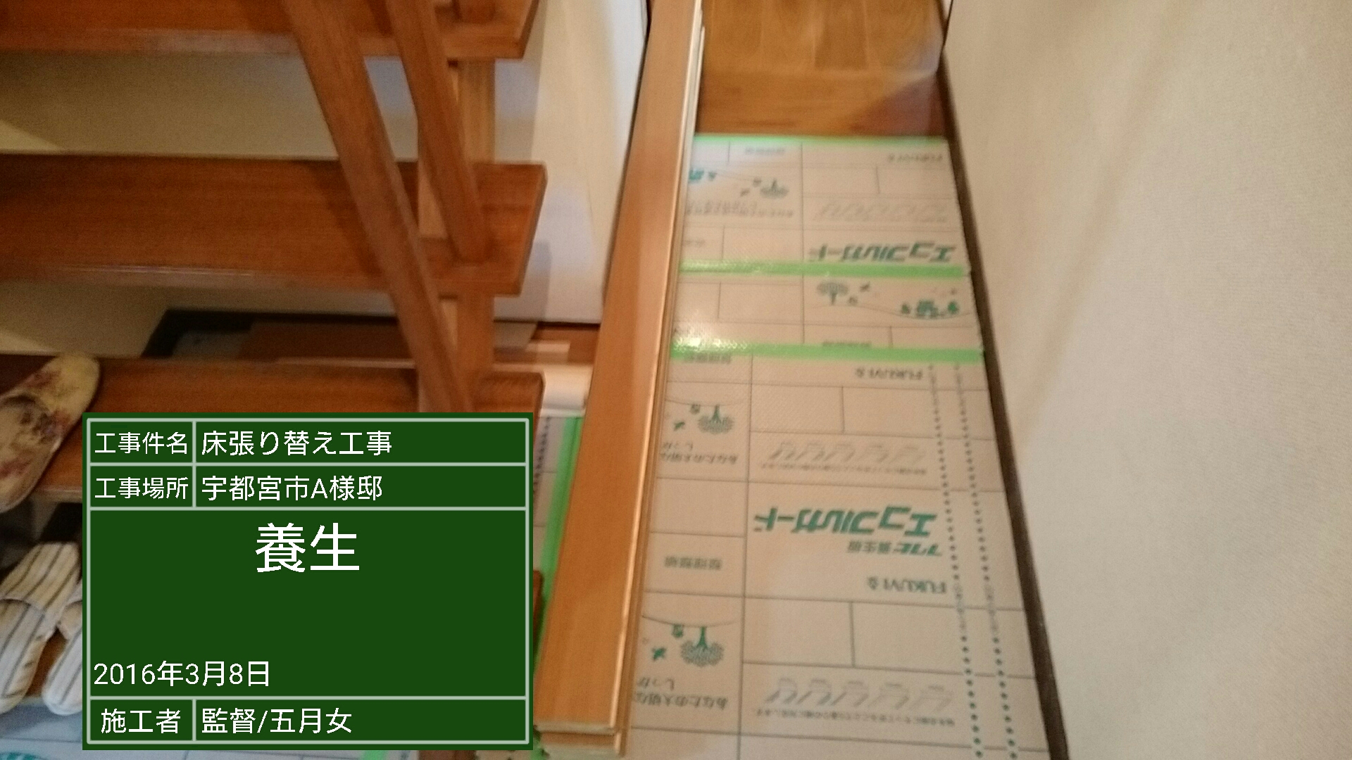 残りの上張り施工や、化粧框の取り付け、脱衣室と台所のCF『クッションフロア』張りがまだこの先残っておりますので、安全性や傷がつかないように、最後に養生しておきました(^-^)v