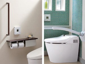 しかし手すりが無いトイレの場合は、つい 「紙巻器」 や 「タオル掛け」