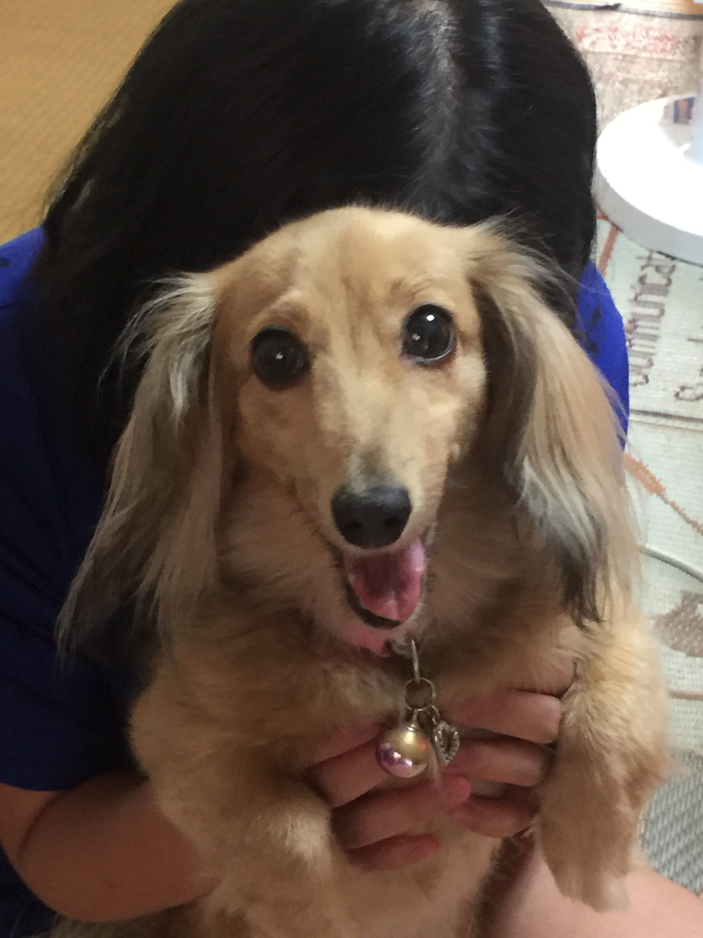 こちら様で飼っているミニチュアダックスフントのこうめちゃんが人間大好き、抱っこ大好きの犬好きにはたまらないです!