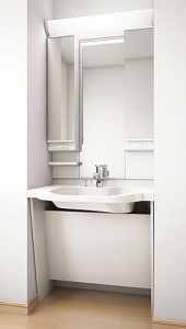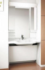 車椅子をご利用されている方の使いやすさに配慮した椅子対応洗面化粧台です。