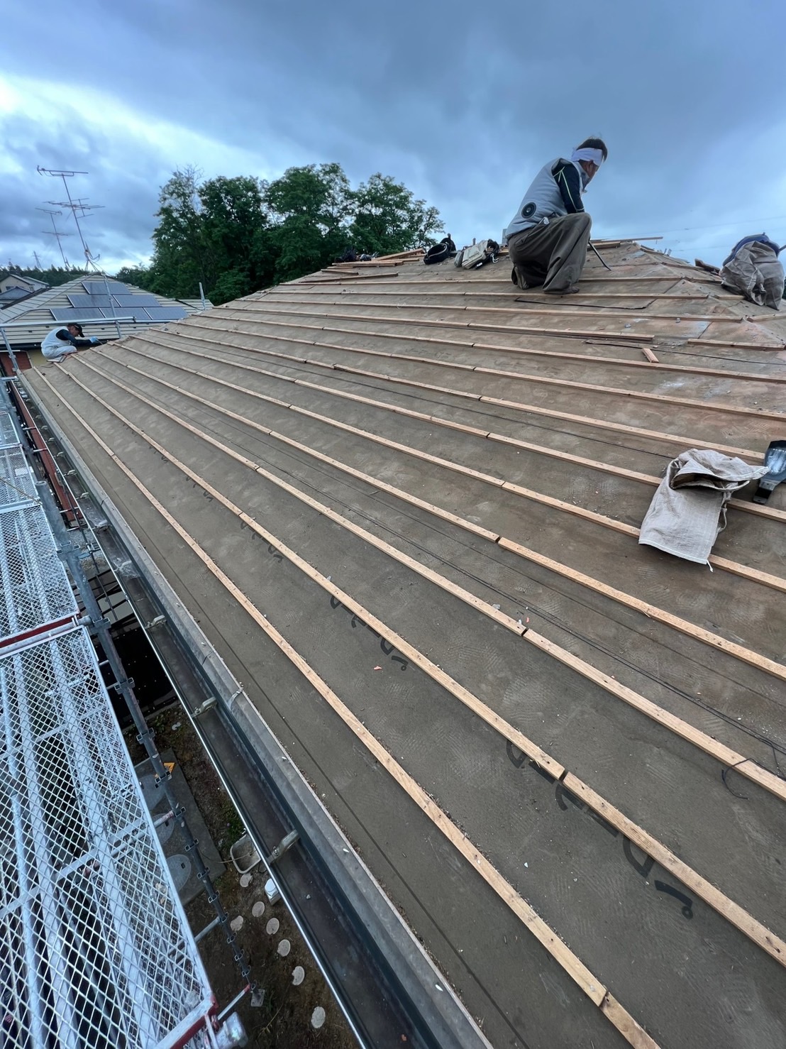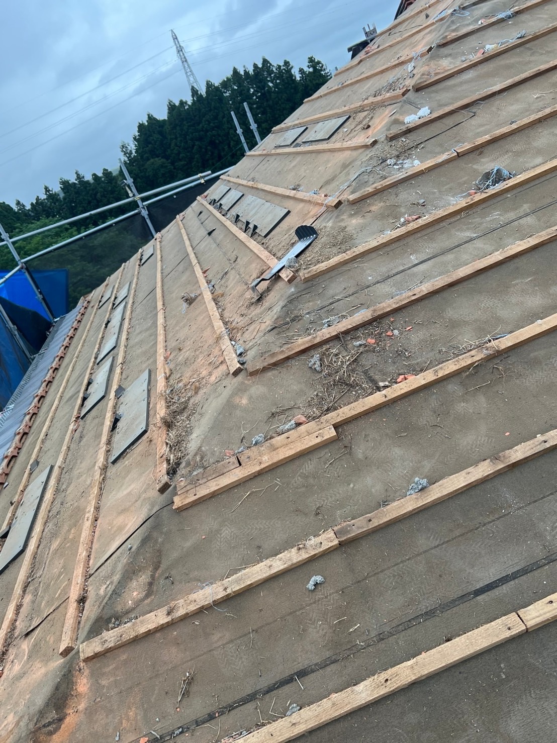 翌日瓦全撤去、下地調整。