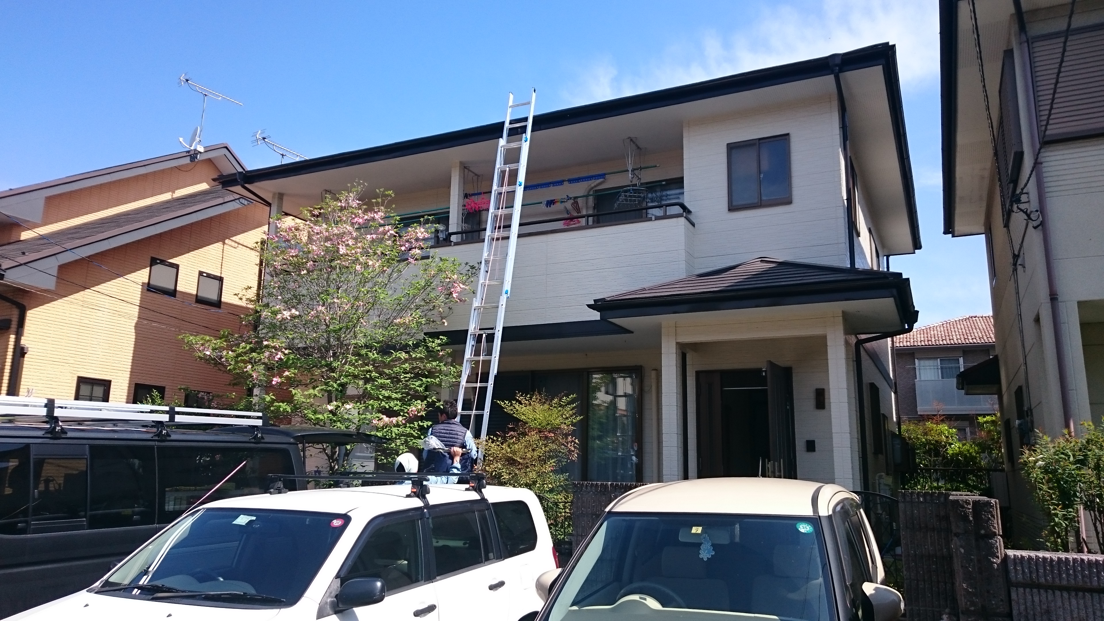 近隣の挨拶を済ませ、ハシゴを架けました❗