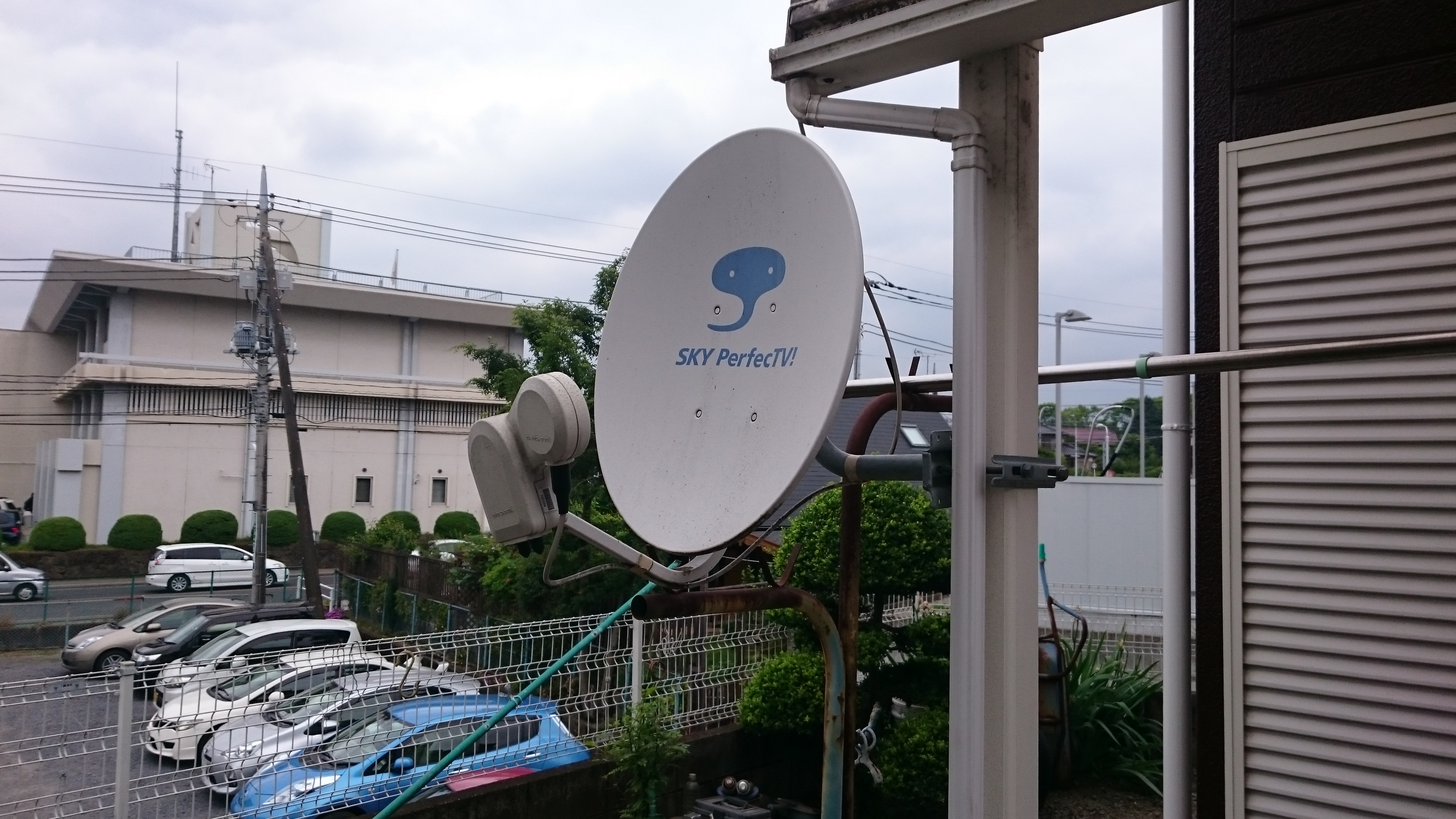 そして、本日は1階部分に設置してあるスカパーのアンテナが調子悪く、TVが映らないとのことでしたので、電気屋さんに見てもらいました❗