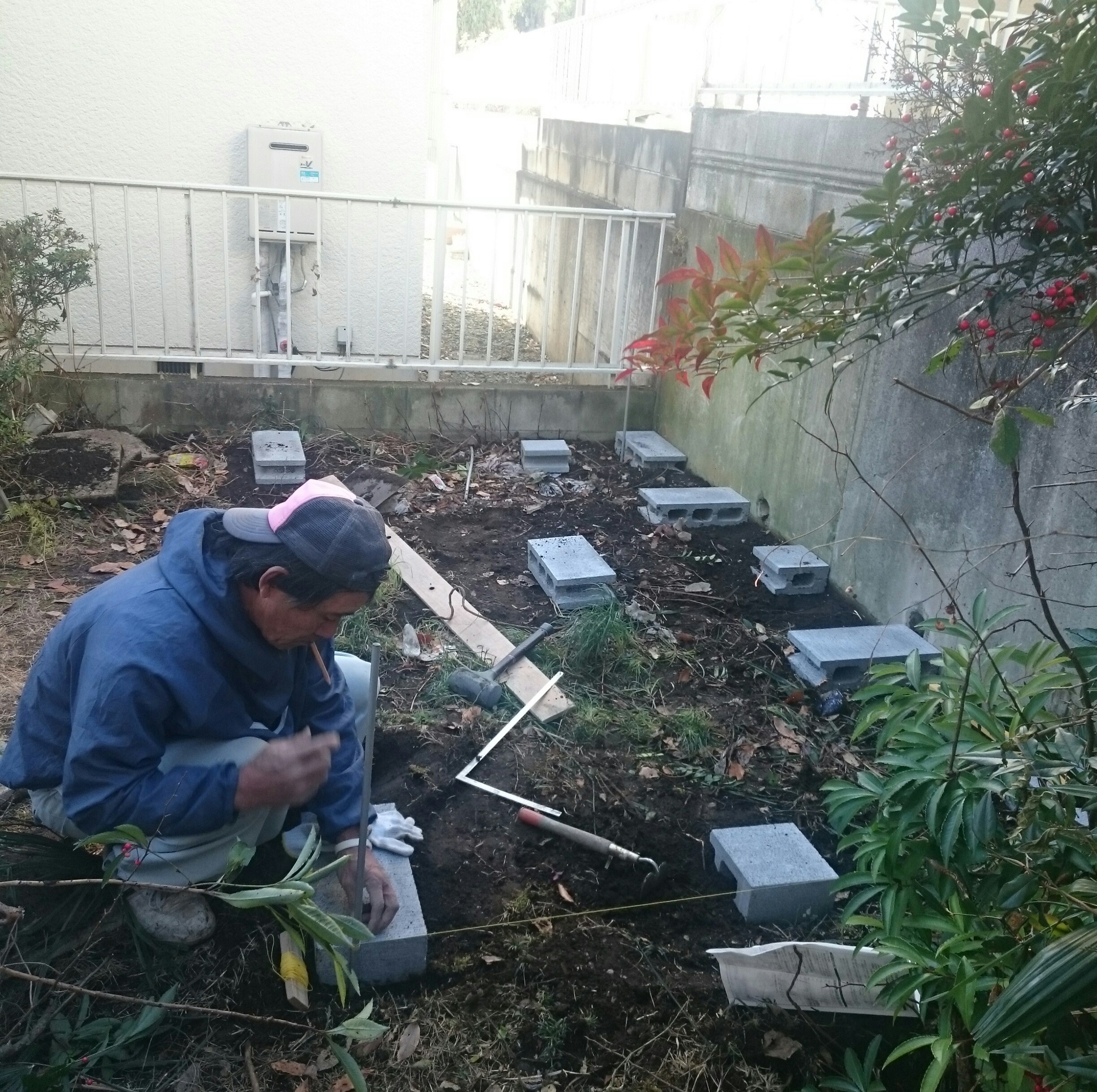 物置の下になるブロックの位置確認です。