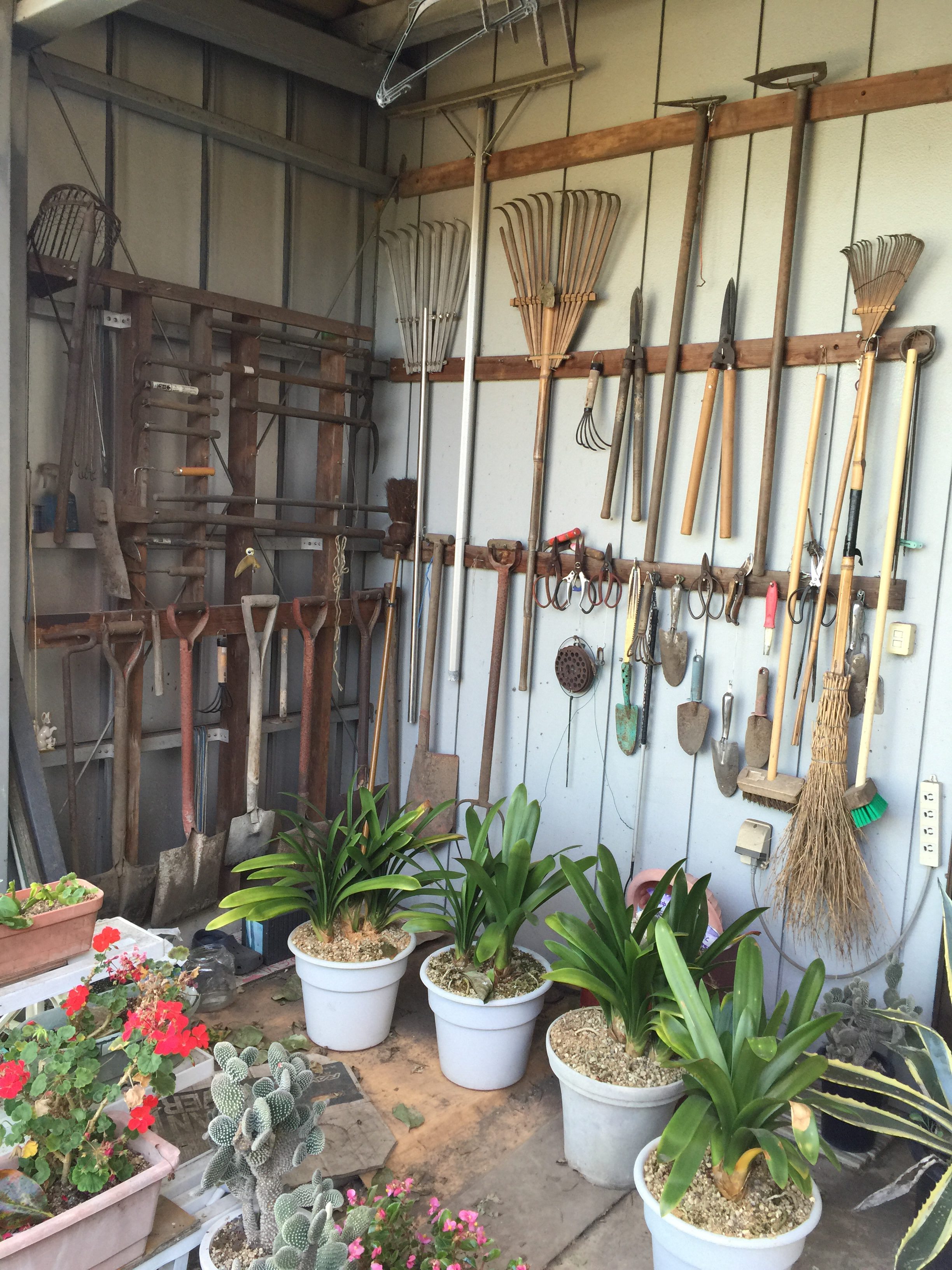 納屋に目をやると…なっ何と、物凄い数の器具がズラーッと勢揃いではありませんか?
