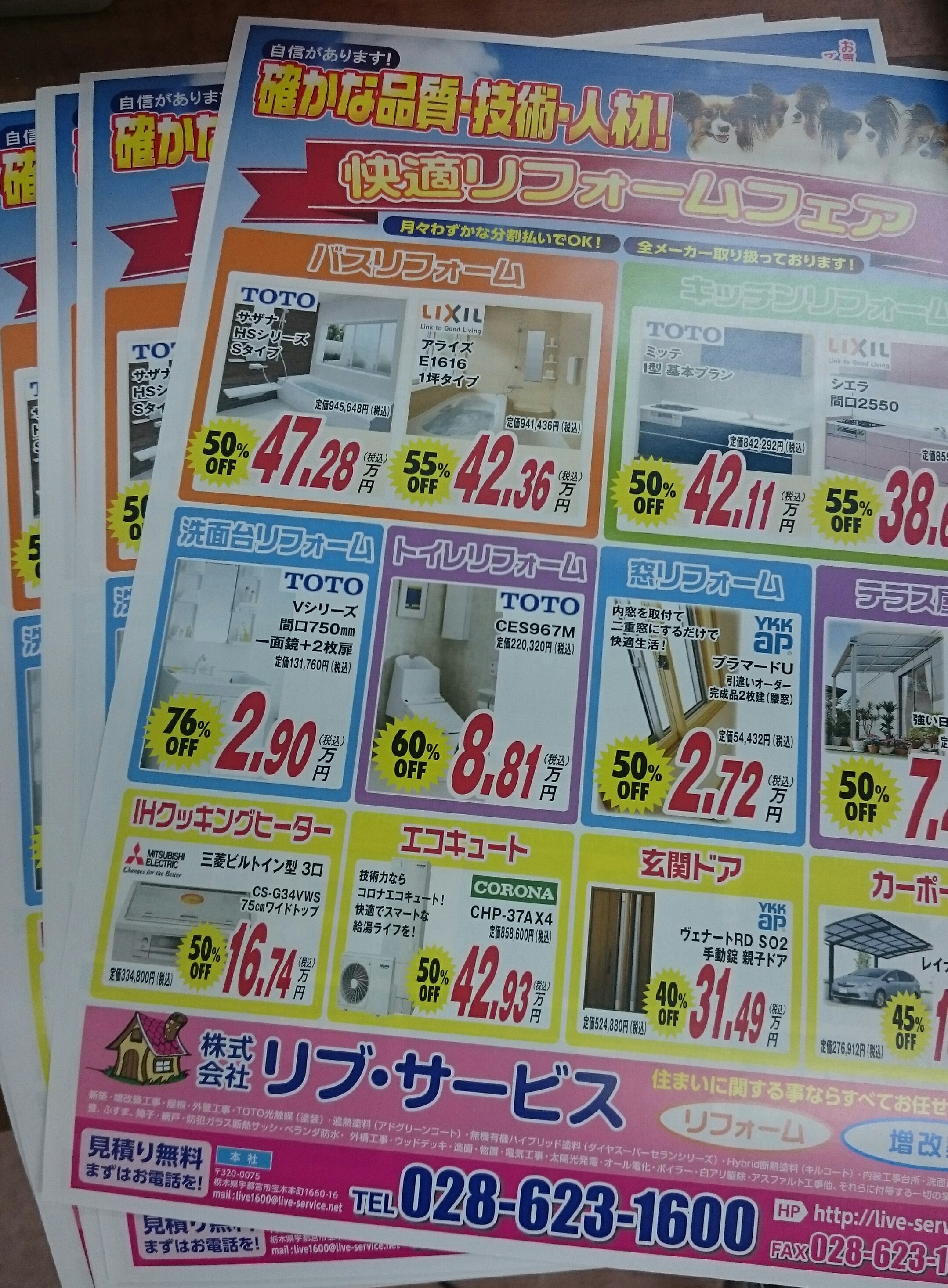 もしも、ご自宅のポストにリブサービスのチラシが入っていたら、チラシの内容はもちろんですが、ぜひぜひ印のほうもチェックして頂けたらと思います(^^)