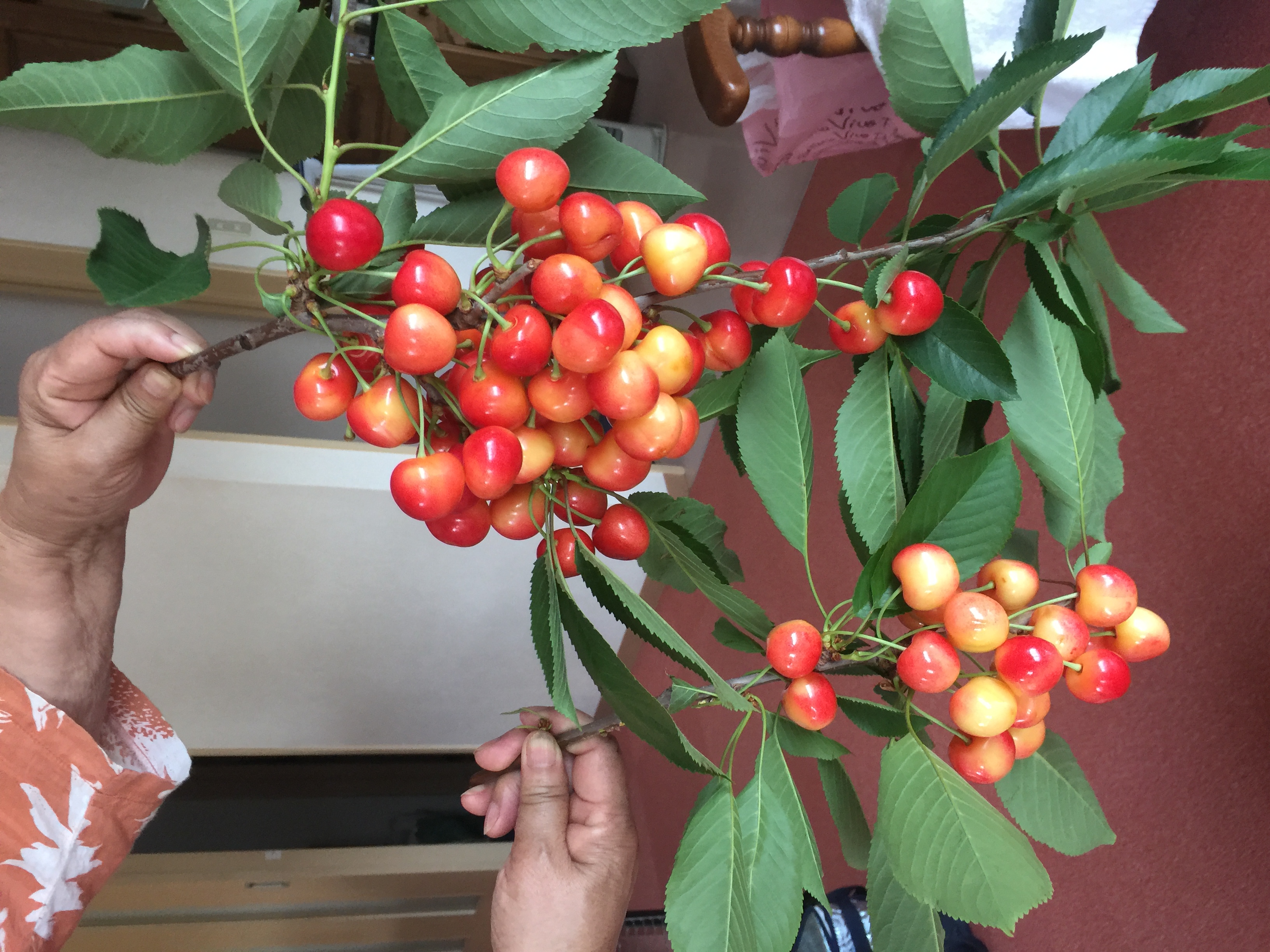 今年は枝に、たわわに付いたさくらんぼもおまけで付いたきました!!!!