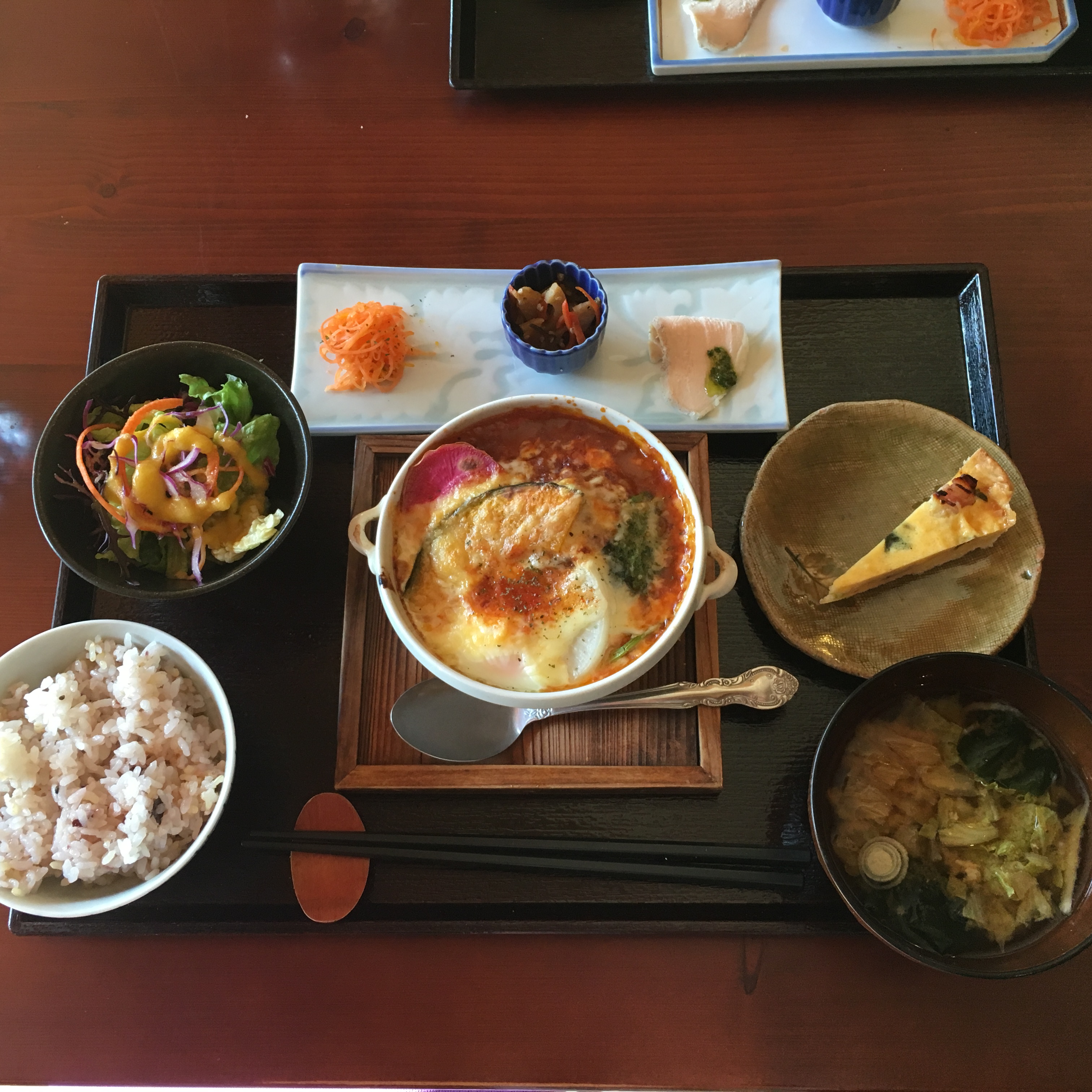 それぞれのランチにキッシュ、前菜、サラダ、みそ汁、ご飯は雑穀米or五分付き、もしくはハーフが付きます。