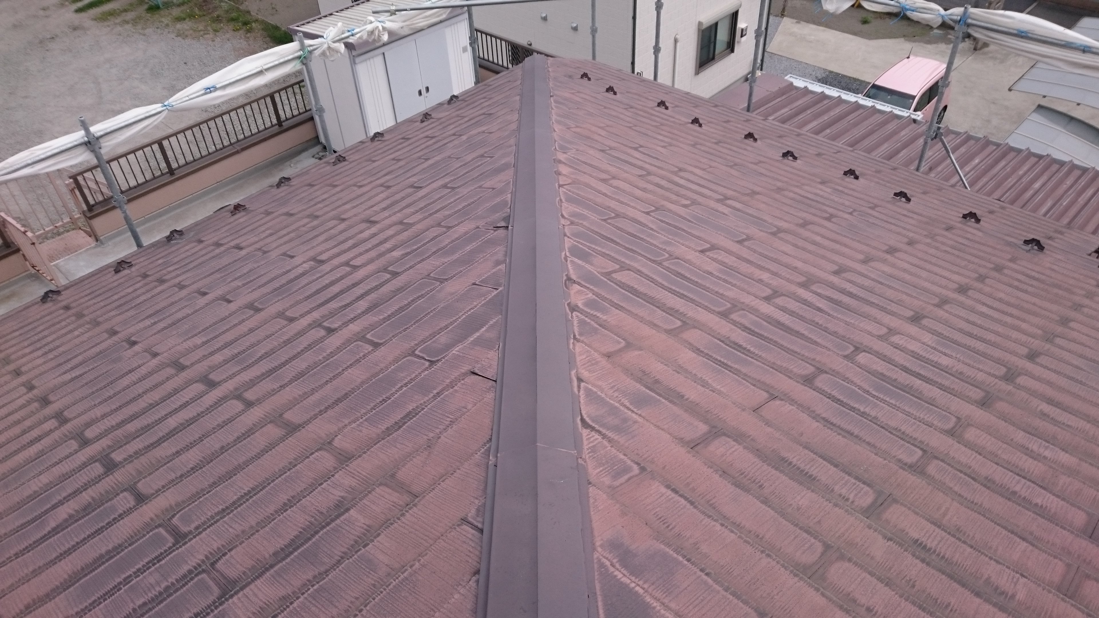 棟板金の側面のクギ浮きが何ヵ所か見受けられたので、職人さんには打ち込んでいただくよう指示させていただきました❗
