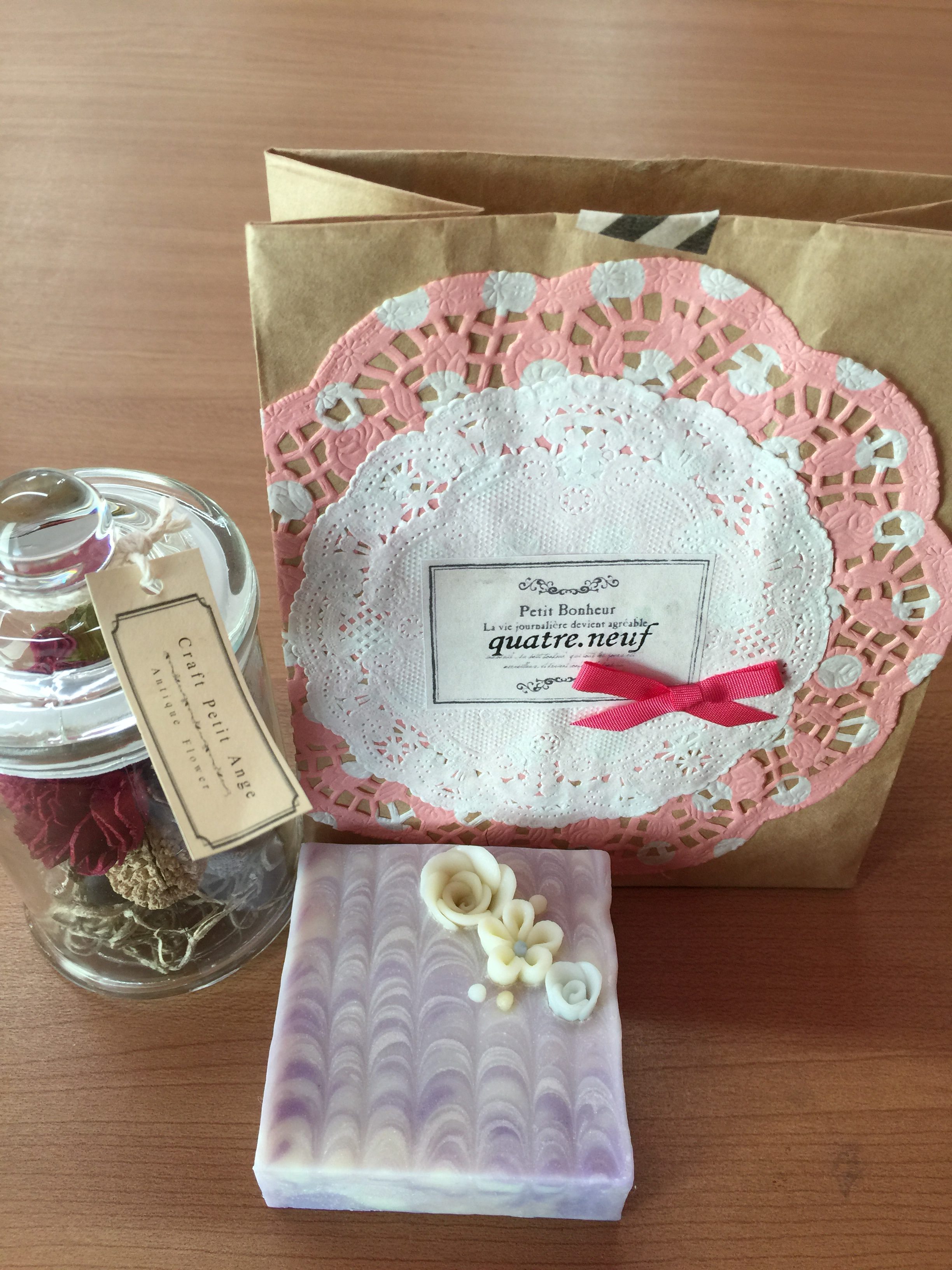その時に、有名作家さんの手作り石鹸とブリザーブドフラワーをお土産に頂戴して参りました!