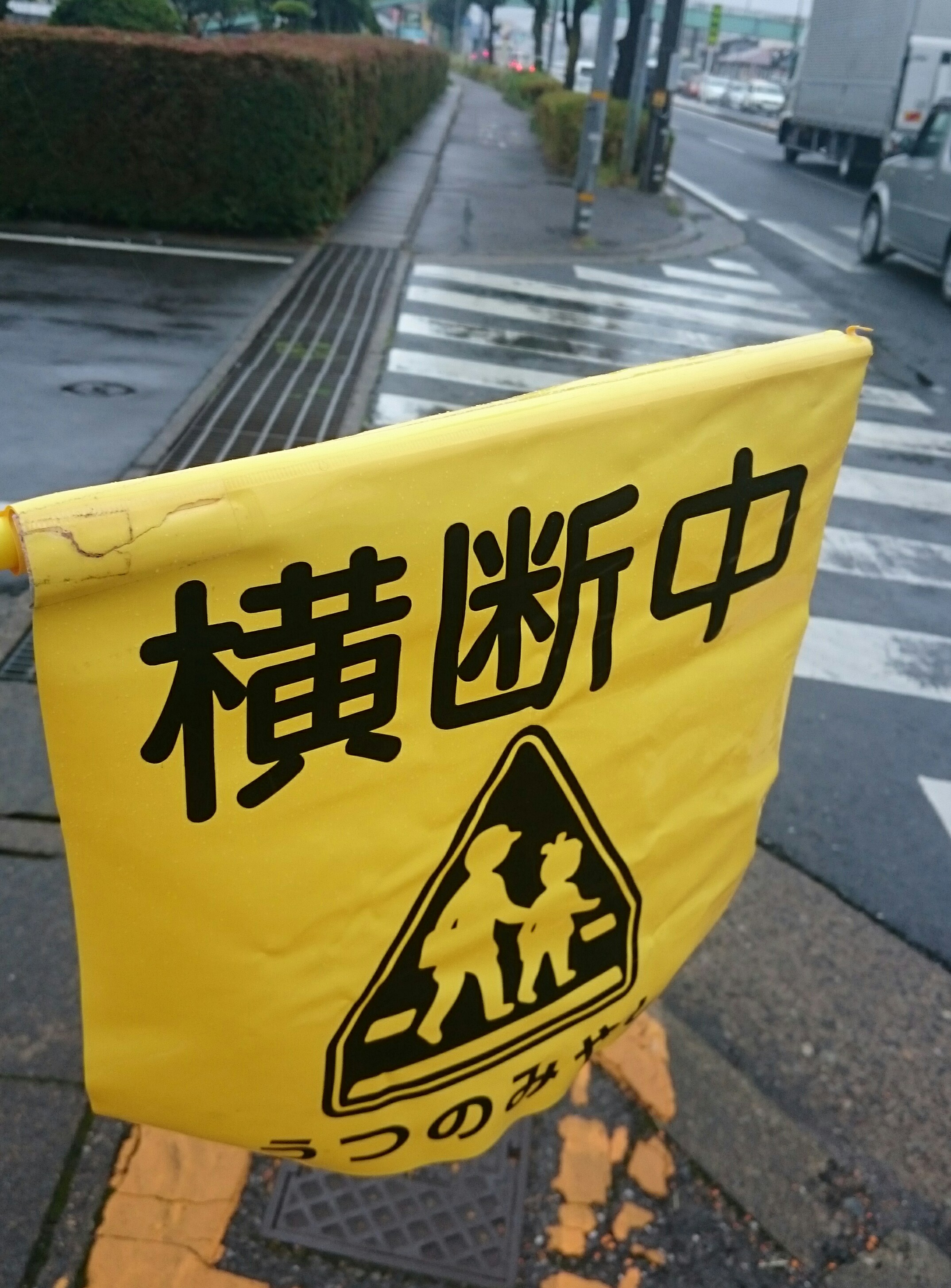 雨の交通指導。