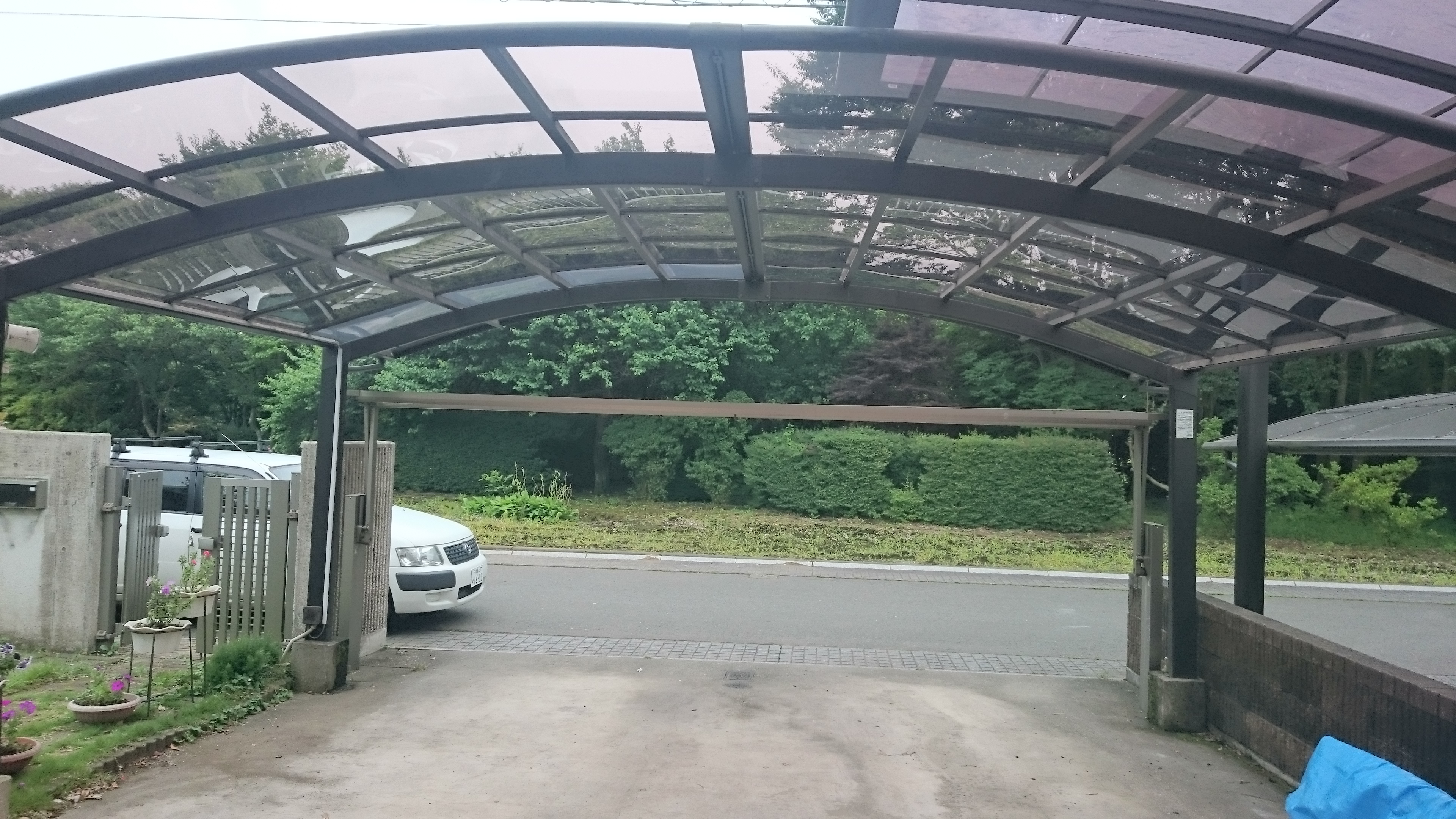 いつも御世話になっている宇都宮市O様邸にて、カーポート屋根ポリカの交換を行いました(^∧^)✨