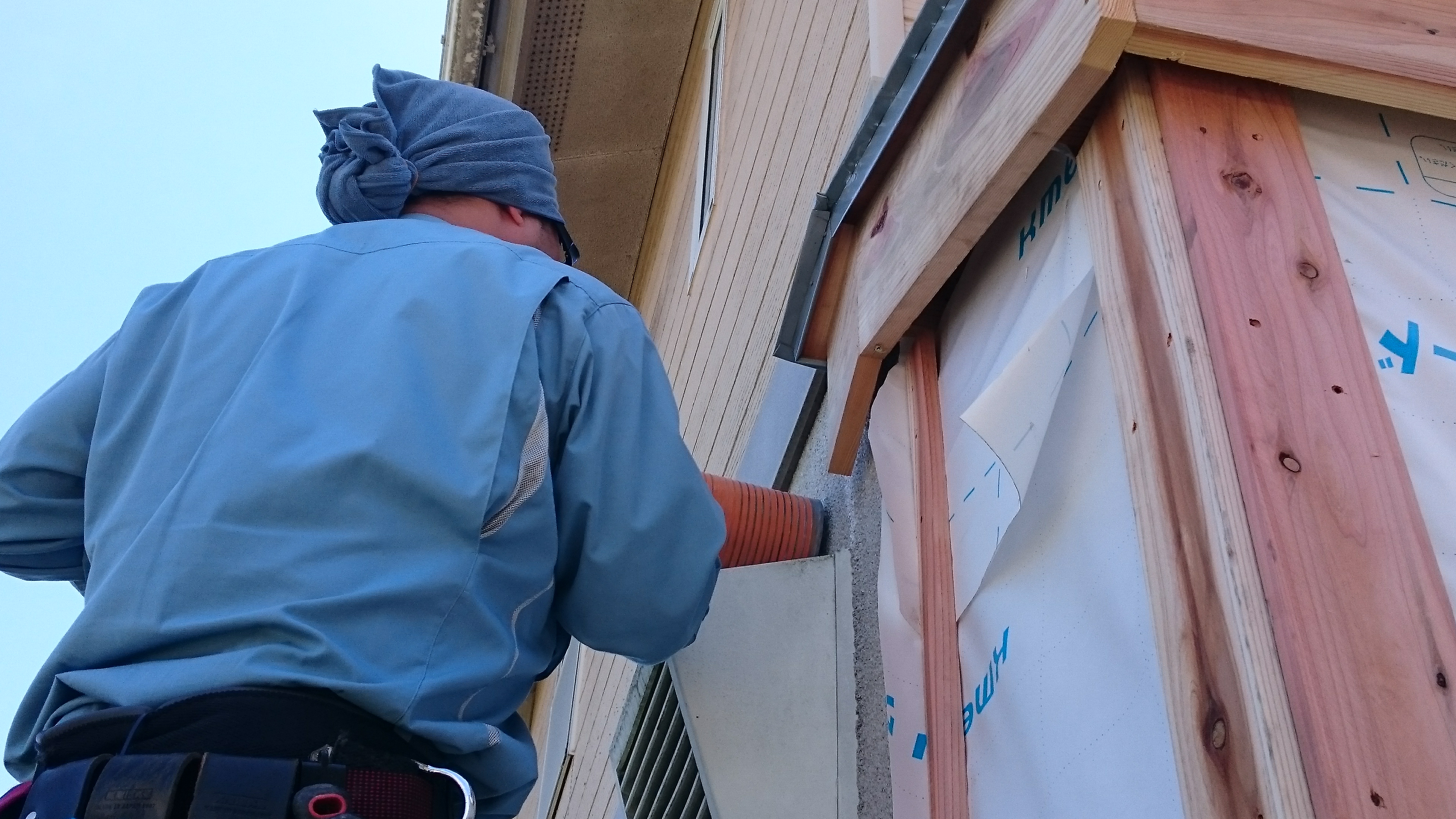 浴室天井にダクトを回し、換気ベントキャップを設置しました🎵