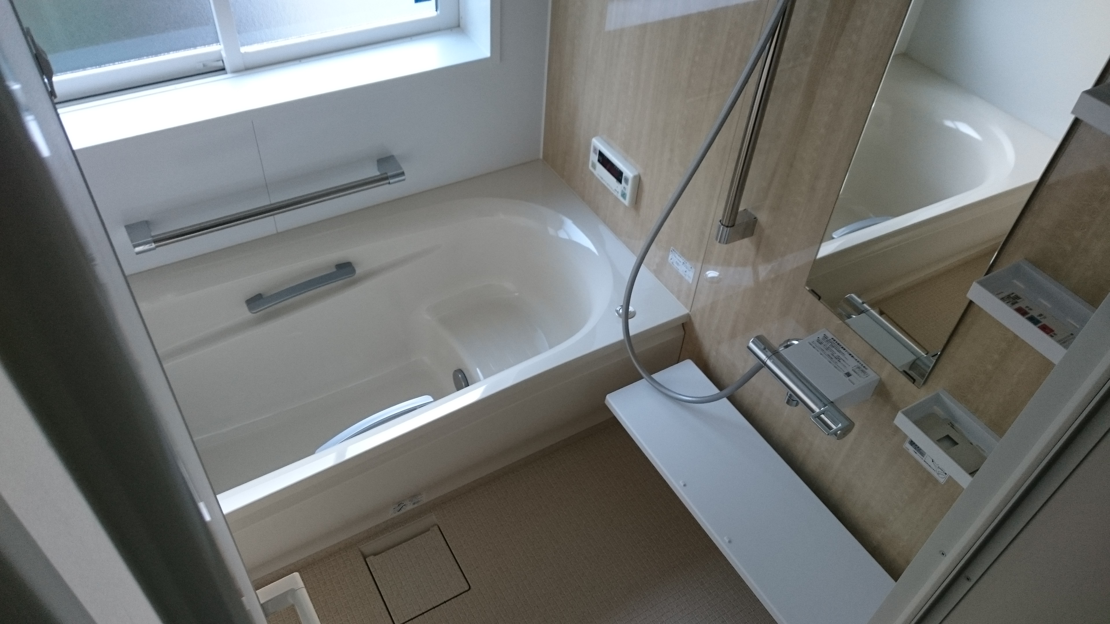 脱衣と浴室の敷居もバリアフリー仕様でフラットに仕上がり(*^^*)