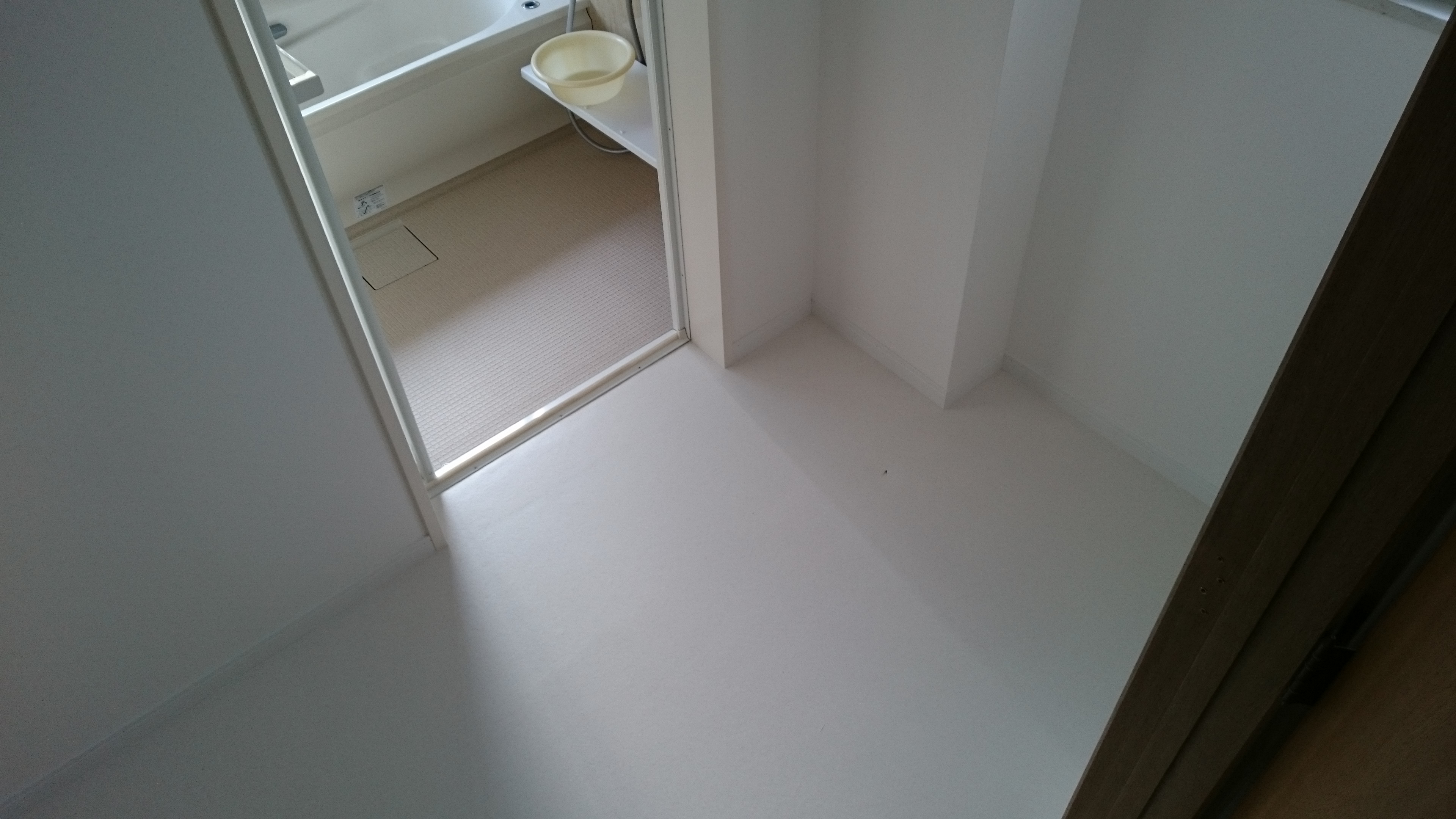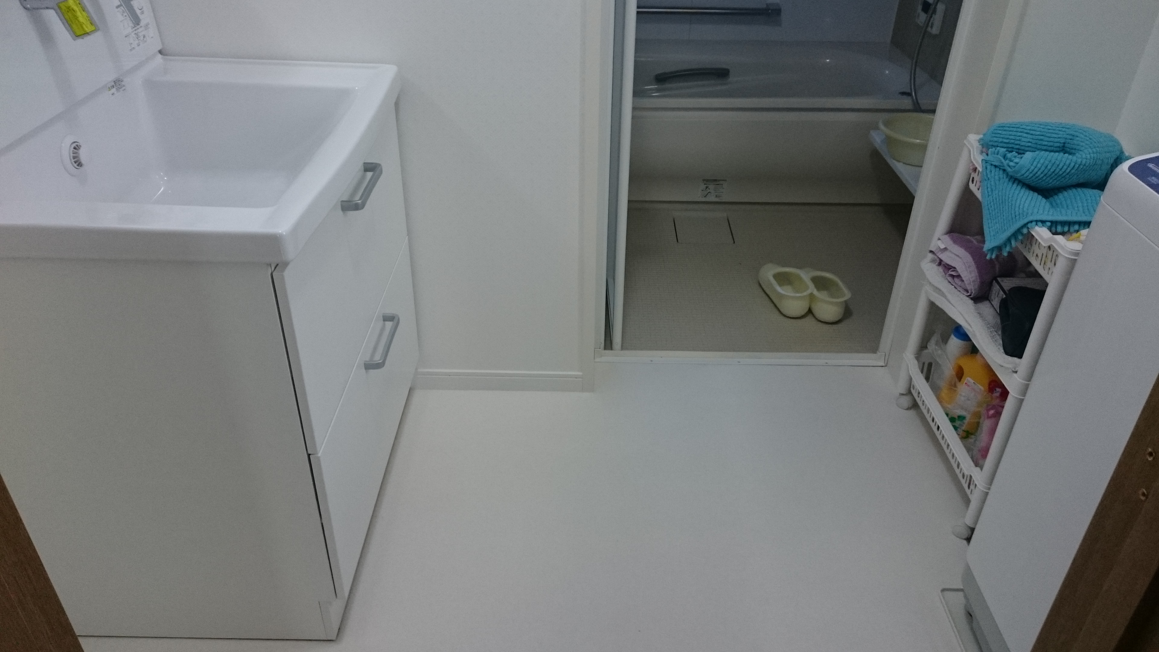 今回は洗面化粧台交換(TOTOサクア)に、天井壁のクロス張り替え、床のCF(クッションフロア)張り替えになります☺
